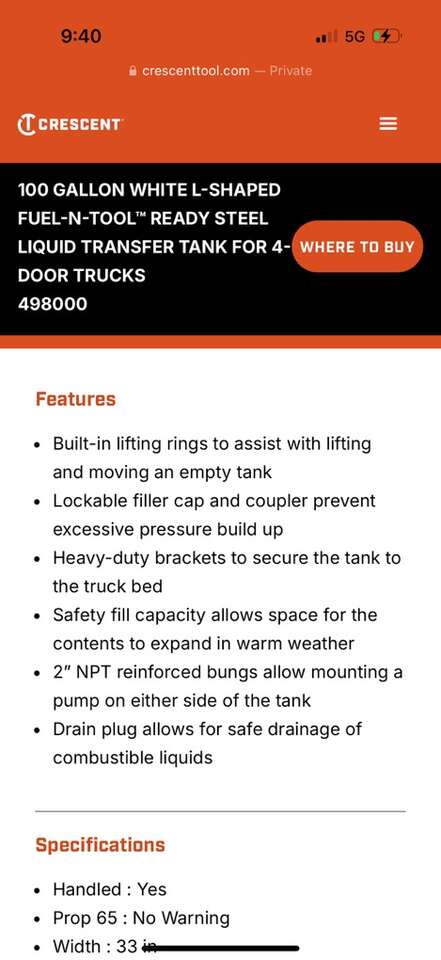 ApplePayCrescent Job Box Fuel Transfer Tank These are brand new still in the box Built for a short bed because of the cut outs but will work fine in a long bed. Also have a long bed tank. Mounting tabs for there box on the side. 100 gallon white L shape These boxes retail for over $800. Save on shipping and taxes. 801-710-0378