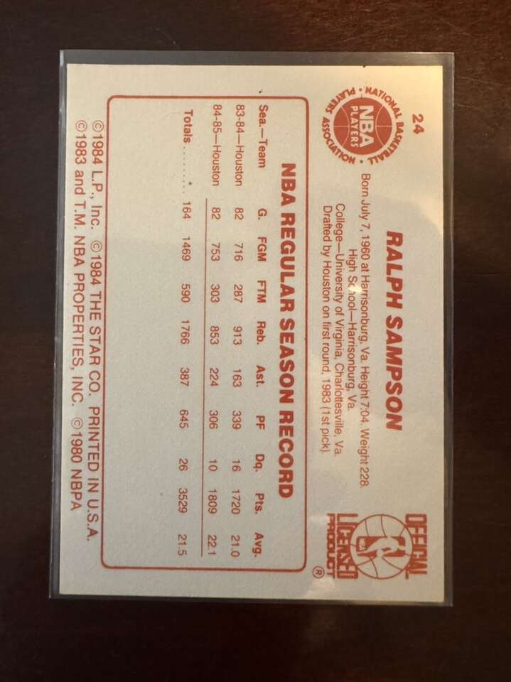 1986 Star Ralph Sampson #24 Houston Rockets