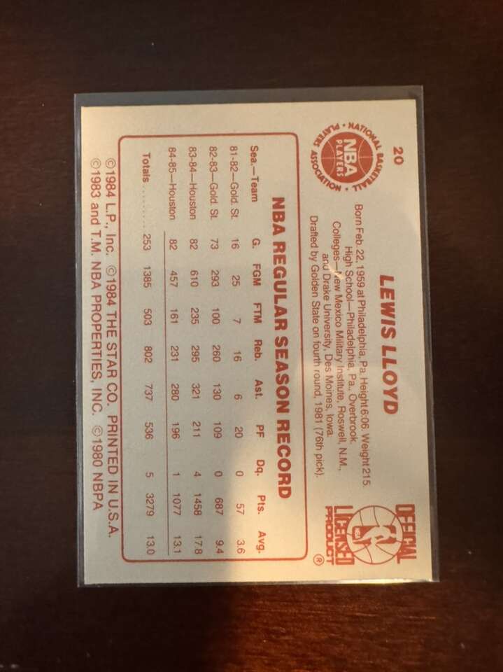 1986 Star Lewis Lloyd #21 Houston Rockets