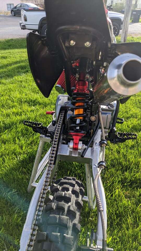 VenmoI will say it has only 9hr on it. hrs will go up a little bit if not sold. the only thing stock is the frame. The engine went from a 125cc to a 140cc lifen motor. Everything else is aftermarket. extended rear swing arm. SSR