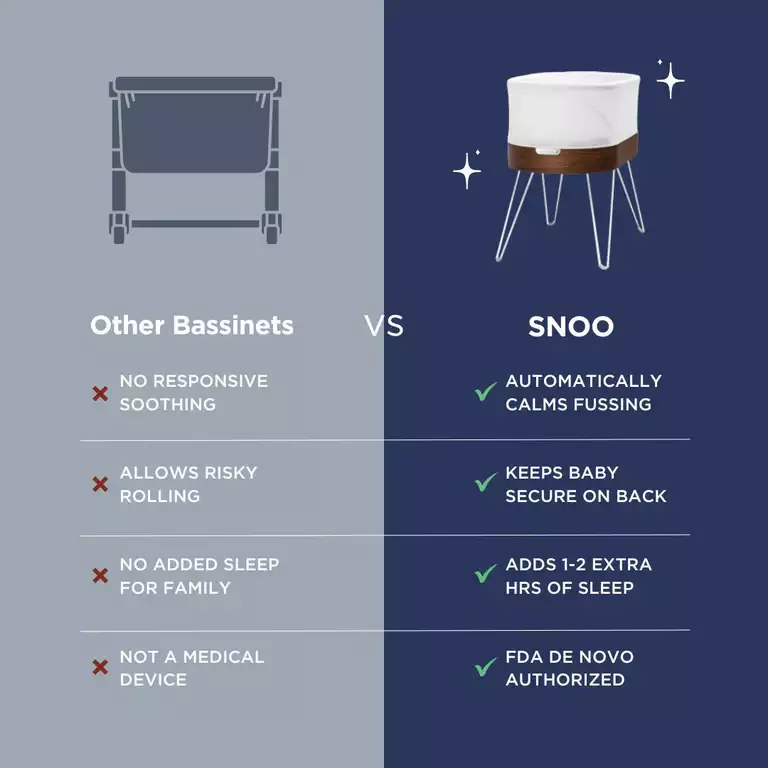 SNOO was granted FDA De Novo Authorization by the FDA and is now classified as a medical device. (De Novo means the product is a whole new and unique class of devices). SNOO is the first and only FDA De Novo Authorized Infant Sleep System (along with SNOO Sack, our patented swaddle that clips into SNOO) to keep sleeping babies positioned safely on the back. Babies who are placed on the back for sleep are at a lower risk of SIDS/SUID. For important safety information visit www.happiestbaby.com/fda.