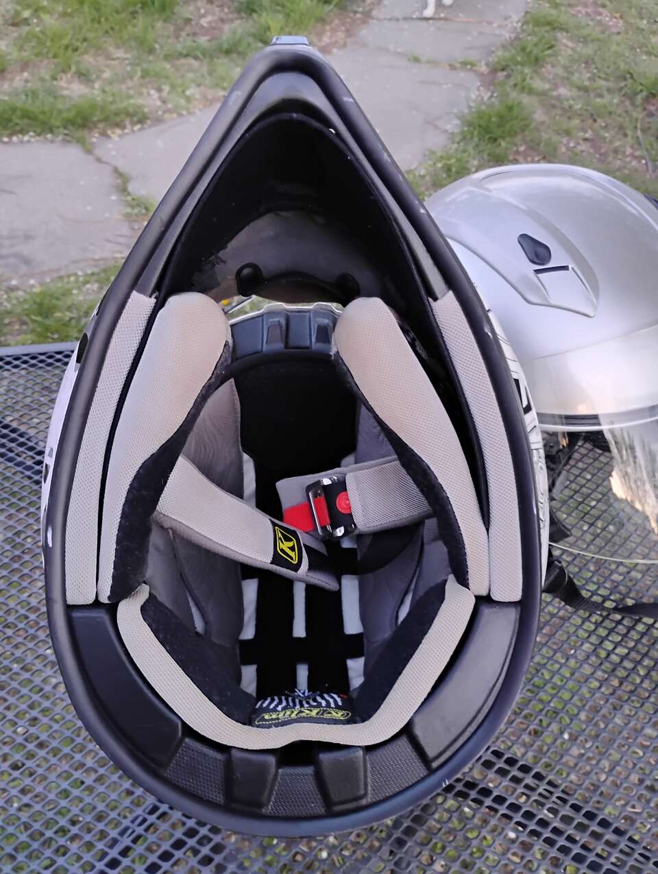 VenmoNice Riding Helmet, BMX, ATV, Motocross, Snowmobile. Shell and interior great condition. Cracked on front plastic SEE PICS. Priced according. No visor.