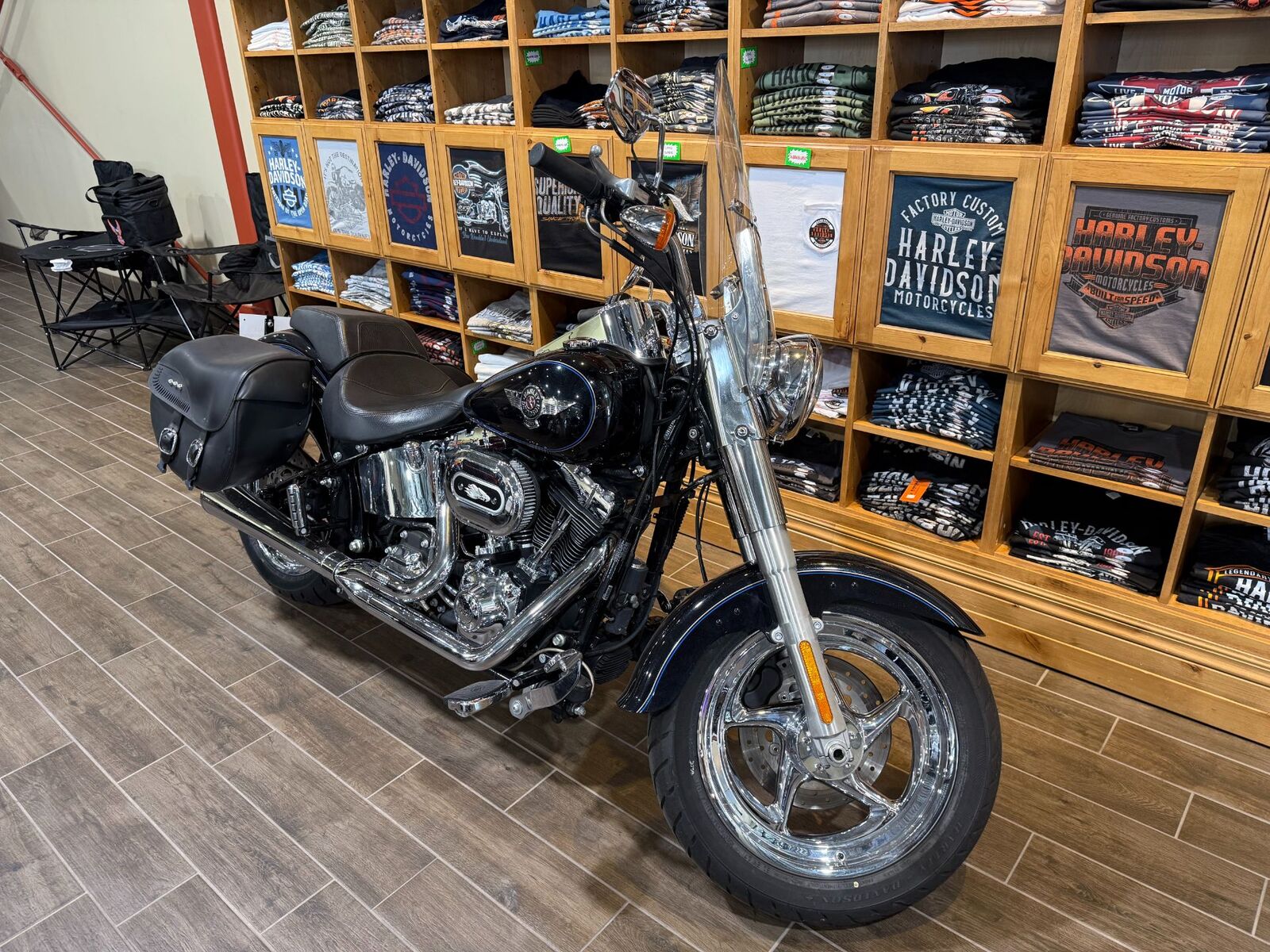Softail Fat Boy The original fat custom icon with a burly style that's often imitated but never duplicated. The 2013 Harley-Davidson Softail Fat Boy FLSTF model is one of the quintessential cruiser motorcycles. Hearkening to the 'hardtail' choppers of the 1960s and 1970s, the Harley-Davidson Fat Boy motorcycle keeps that heritage alive more than 40 years later. The FLSTF Fat Boy is the original 'fat custom' bike - laid-back and luxurious with an unmistakable profile on the road. The Harley Fat Boy features an air-cooled Twin Cam 103 Harley engine with 6-speed Cruise Drive transmission, providing more power for passing, hill-climbing, and riding with a passenger and luggage. Take a seat on this Harley and get the experience of one of the 2013 H-D cruiser motorcycles. Learn about other Harley Softail motorcycles in addition to this cruiser. Look at the Heritage Softail Classic model, too; this classic motorcycle is ready for the road. If you like choppers, be sure to take a look at the Fat Boy Lo model, another of the custom Harley motorcycles.