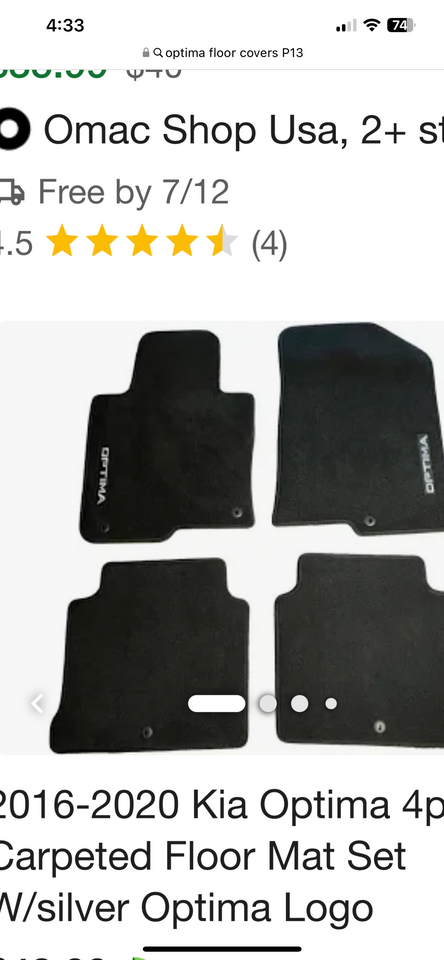 Four new floor covers, pristine, gift quality, may also fit Sonata and K5 models.