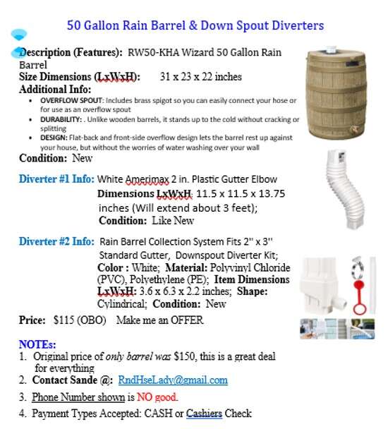 Description (Features): RW50-KHA Wizard 50 Gallon Rain Barrel