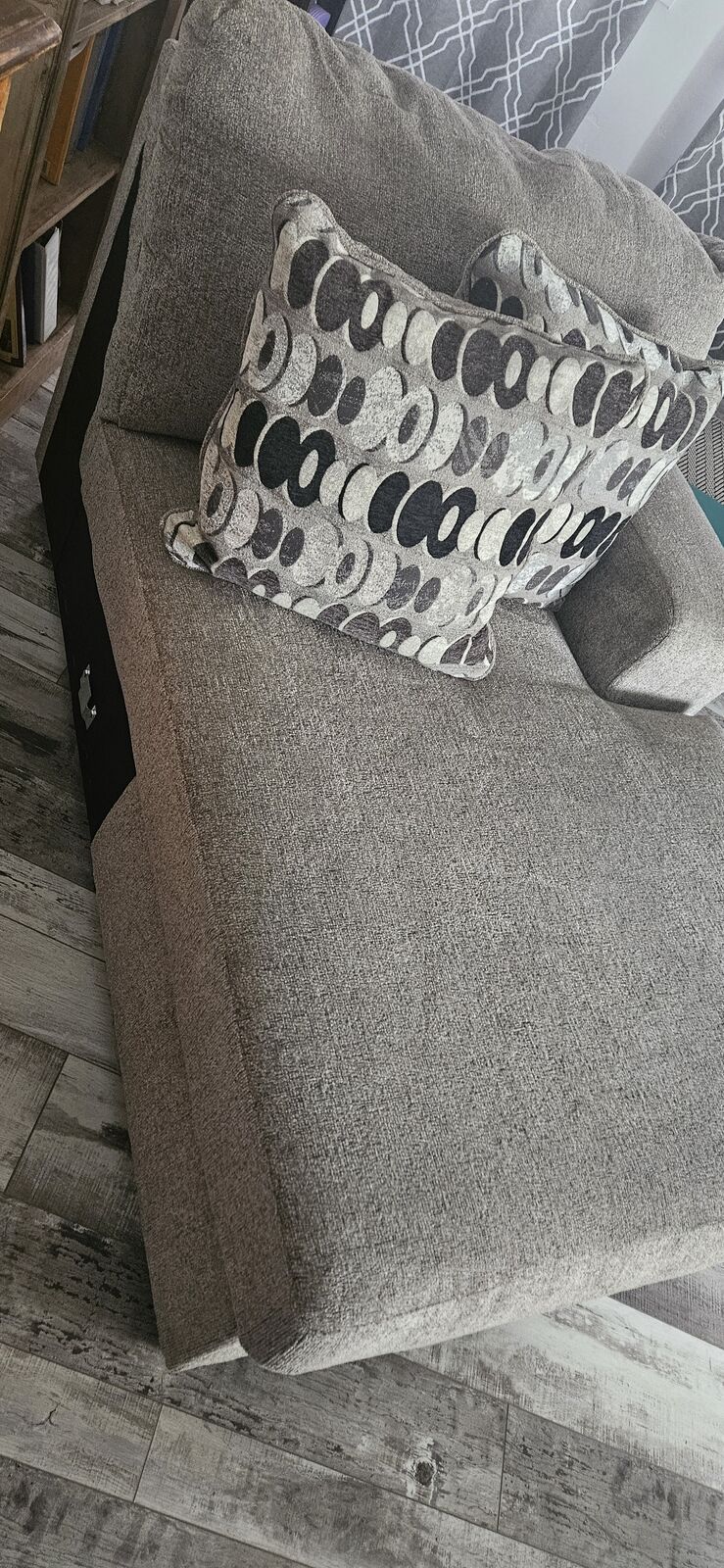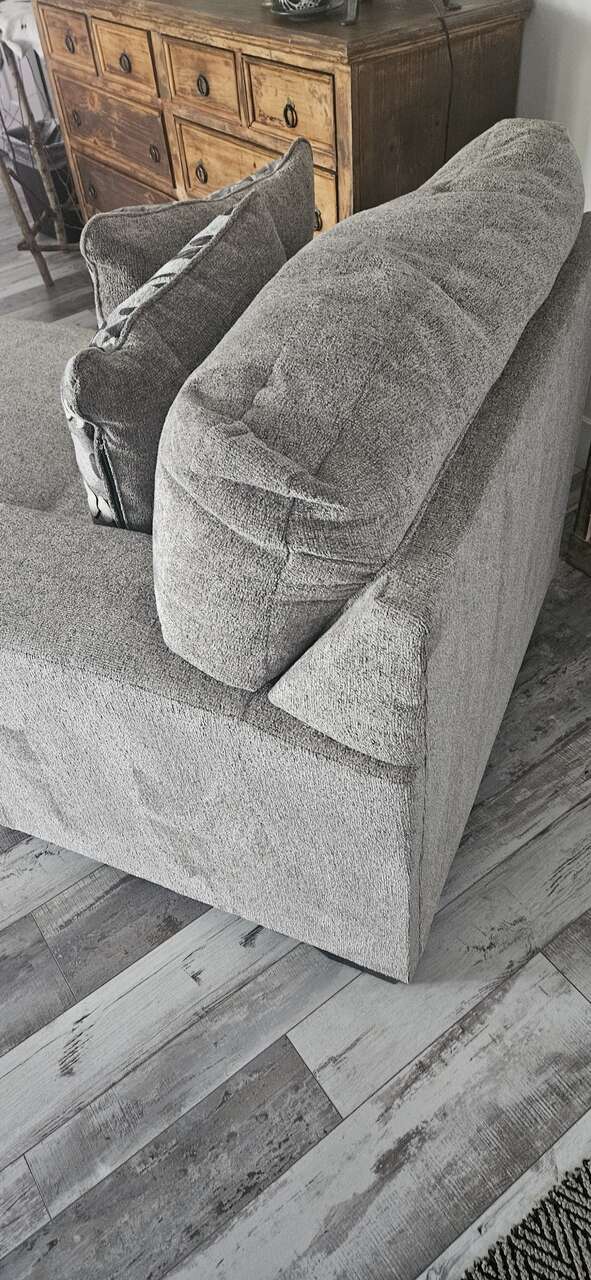 VenmoFIRM ON PRICE! Light gray- black white combo pillows. Extra large end piece to a sofa set that I cannot use. about 5 foot long and 3.5 foot wide. VERY COMFORTABLE! can fit 2 kids or 1 adult to sleep on! It can even work for a childs bed! From a smoke free, pet free, kid free home. Light and easy to move. Looks great from the one angle as it can be attached to another sofa but is a great freestanding piece. Has 2 pillows. fabric. Brand new.