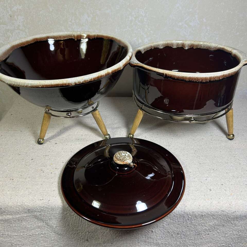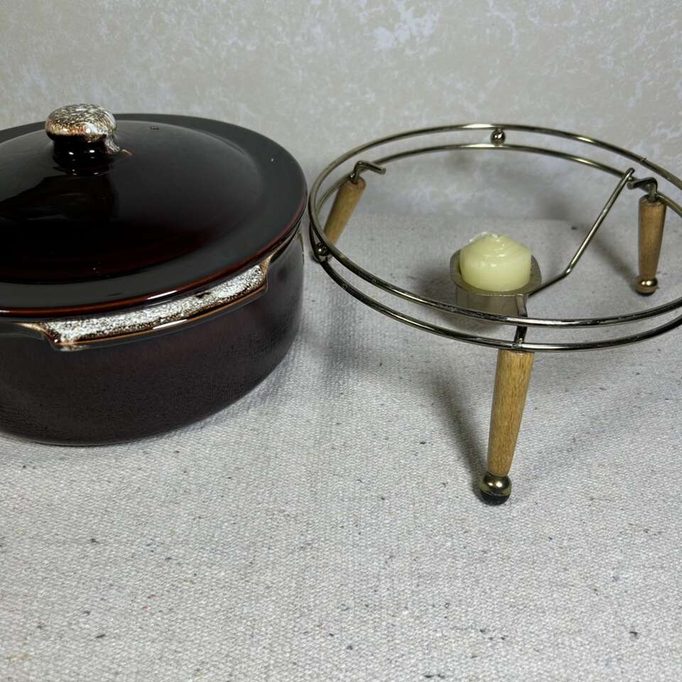 ApplePayVintage Pfalsegraff “Oven-to-Table” Casserole dish & serving Bowl. These dishes are BRAND NEW in the box and have never been used. They are New-Old-Stock (NOS) at least 50-60 years old and appear to be Gold-Stamp awards- if you remember what those are. Casserole dish has its own trivet & is actually a warming frame with a holder for a candle to keep the food warm. This would work great when you’re not at home with a microwave or the power goes out. (Very low tech). The serving bowl is also oven to table and has its own trivet as well. As mentioned these dishes are in new condition with no chips, cracks scratches, utensil marks, crazing. Delivery available to a convenient location when in your area for $5.