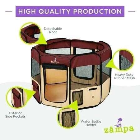 Zampa Portable Pet Playpen, Water-resistant