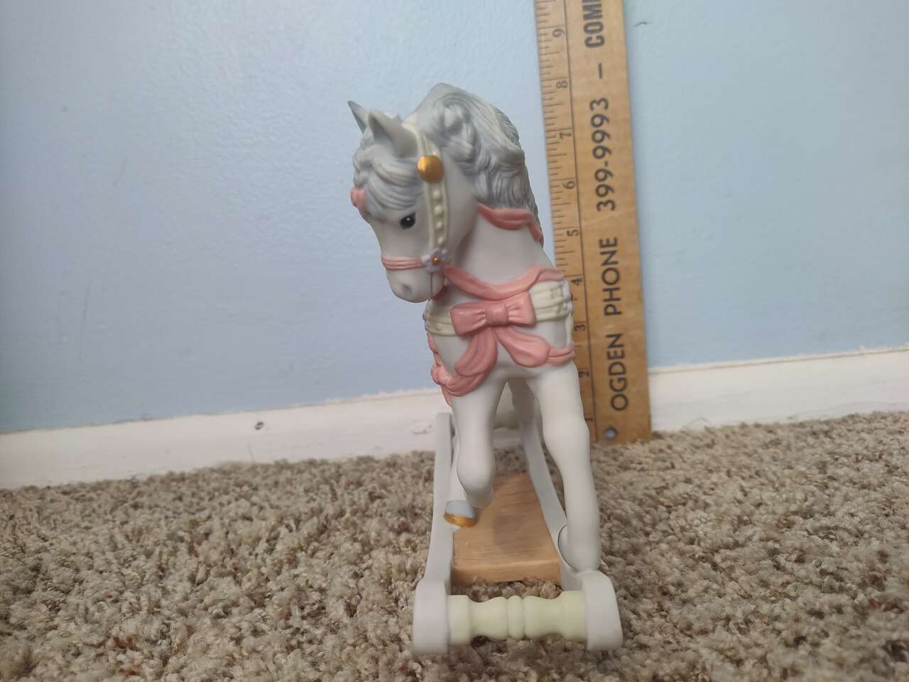 VenmoSPG Fine Porcelain Rocking Horse. Approximately 6 inches inches tall. These items have been displayed in a curio cabinet, so we’re gently used, but still very beautiful.