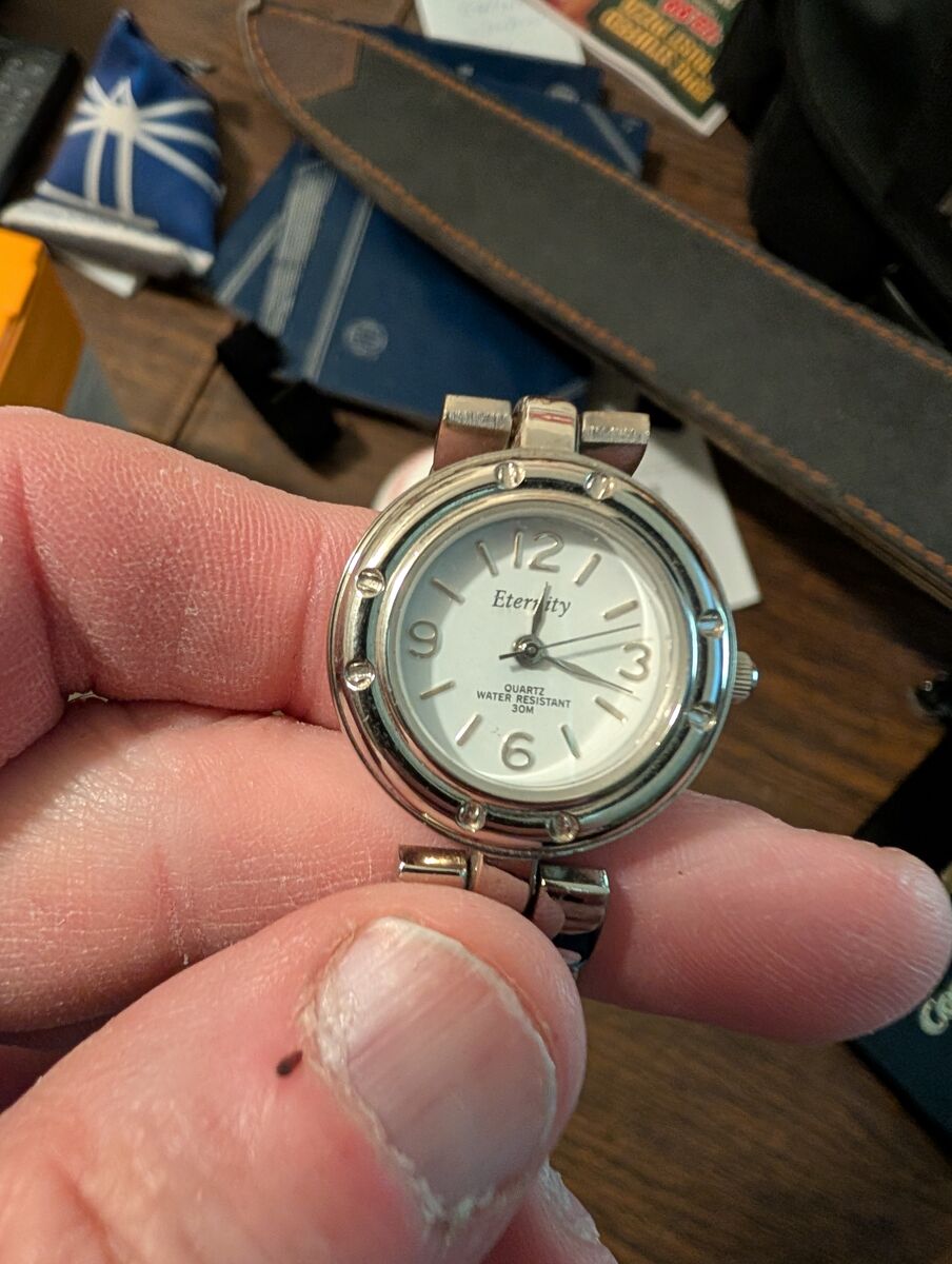 PayPalThe Eternity vintage Ladies watch is a stylish and elegant wristwatch designed specifically for women. With a 30m water resistance, this watch is perfect for everyday wear and can withstand splashes and brief immersion in water. The brand Eternity ensures high quality and craftsmanship, making this timepiece a durable and reliable accessory. Additionally, a brand new battery guarantees accurate timekeeping, making it a practical choice for any woman looking for a classic and timeless piece of jewelry. 10 dollars or best offer. Will ship world wide.