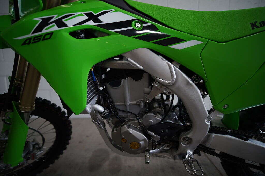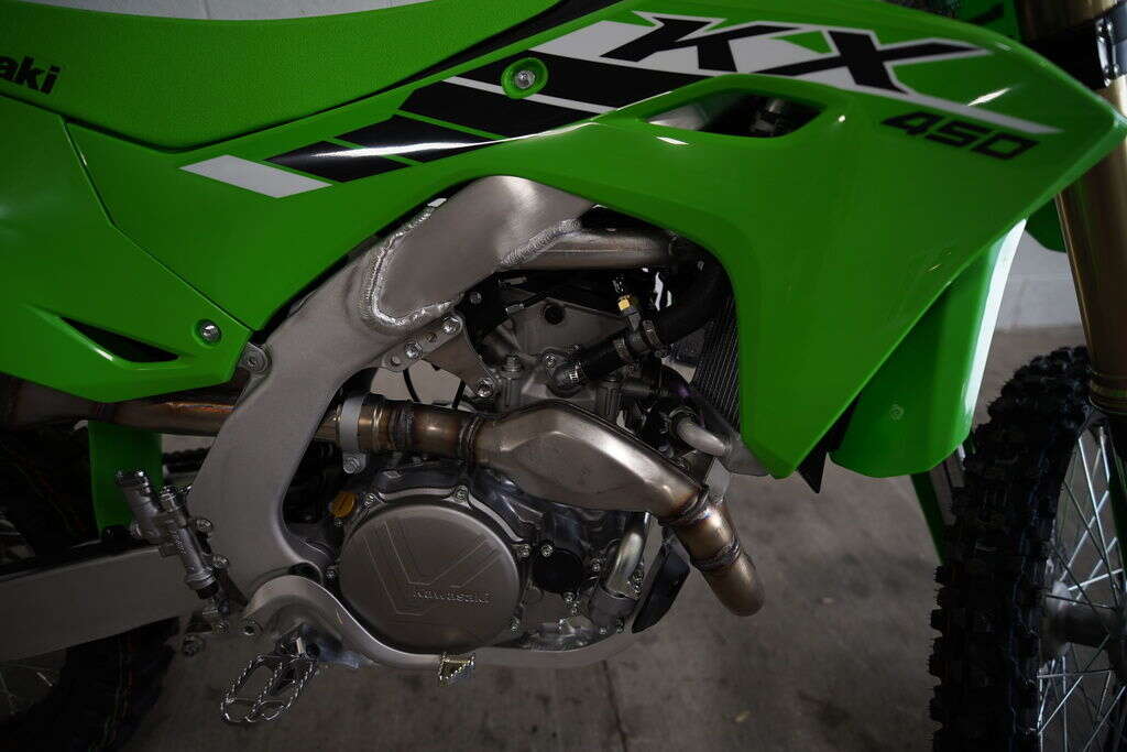 The KX™450 motorcycle engine delivers broad, useable torque and strong, responsive power across the rev range. From the starting gate to the finish line, this race-ready machine is built to stay ahead of the pack.