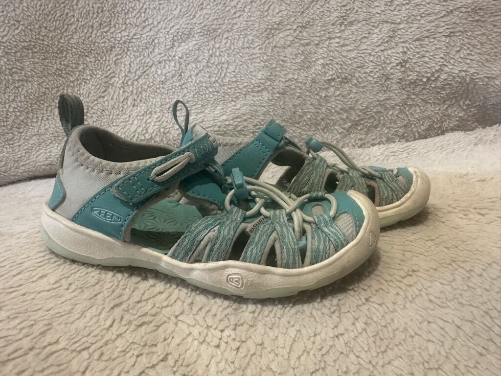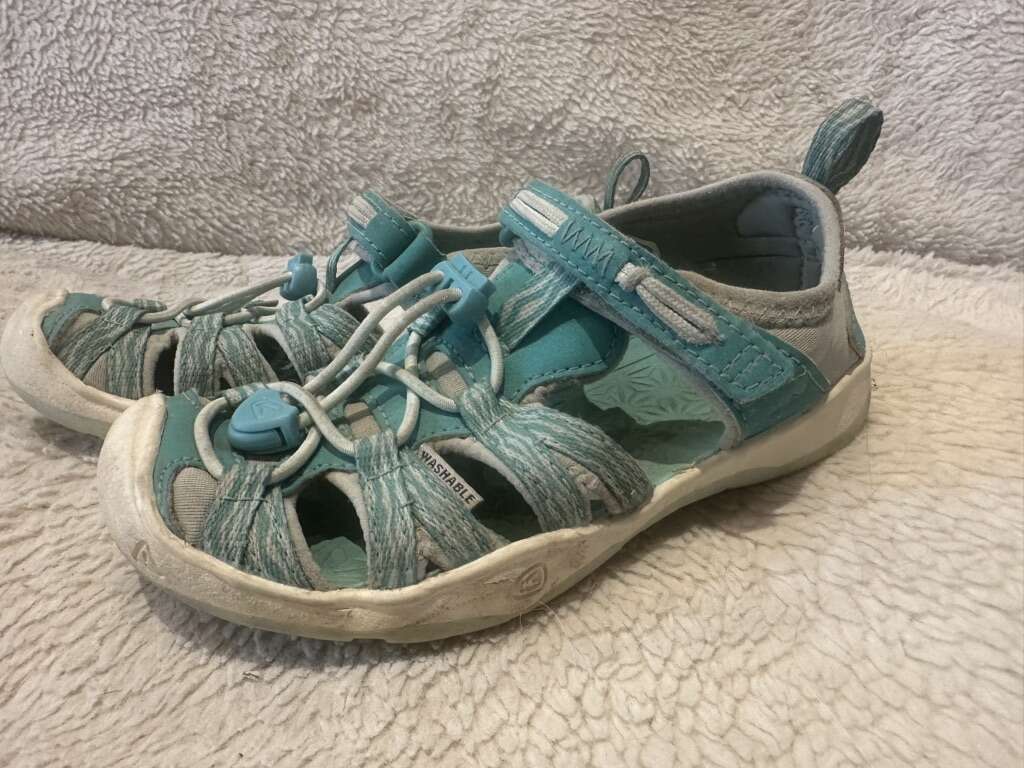 Keen toddler size 10 beach blue/light gray wavy stripe slim style washable, hiking sandals. These are in good condition, see photos for details. I take cash or Venmo, but cash is preferred. Text is best. 801201-4446.Check out my other ads for additional sizes and styles.