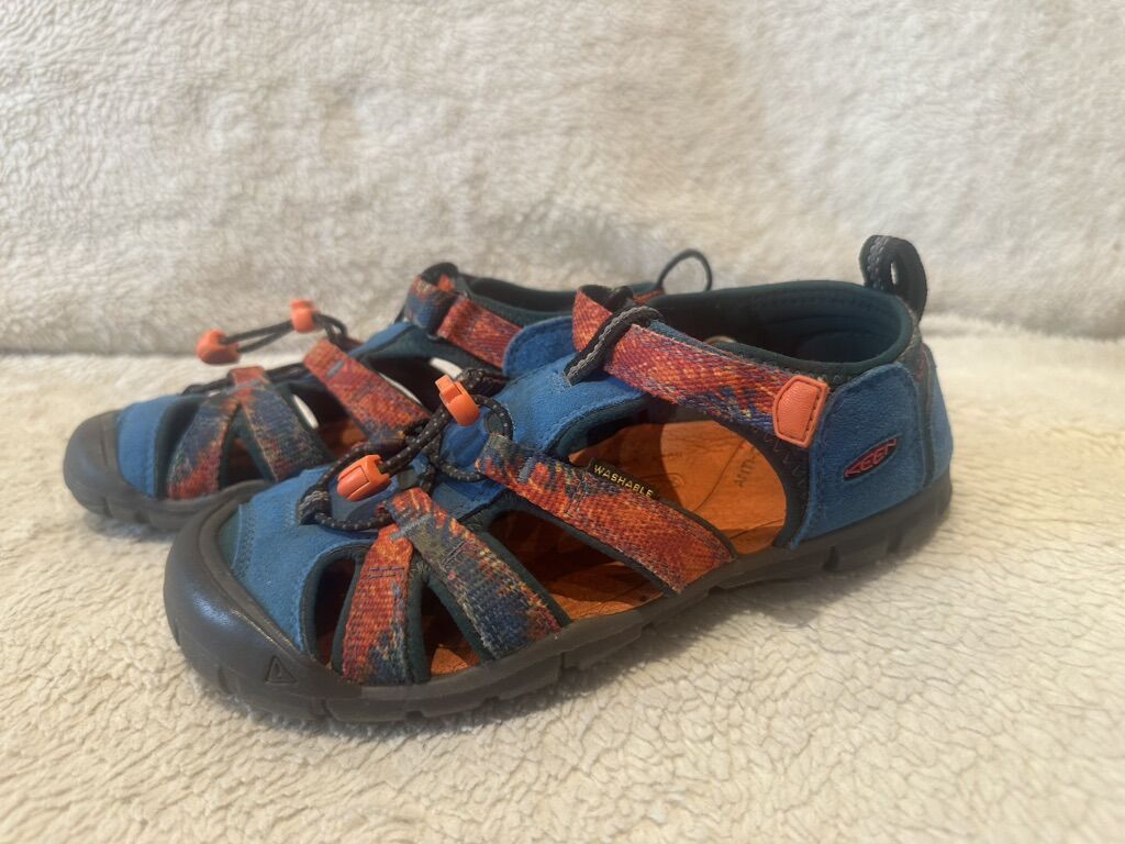 Keen youth size 3 blue and orange washable slim style hiking sandals. These are in good condition, see photos for details. I take cash or Venmo, but cash is preferred. Text is best. 801-201-4446. Check out my other ads for additional sizes and styles.