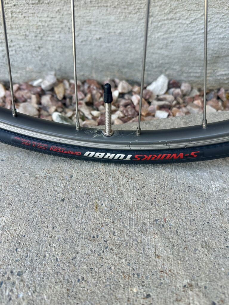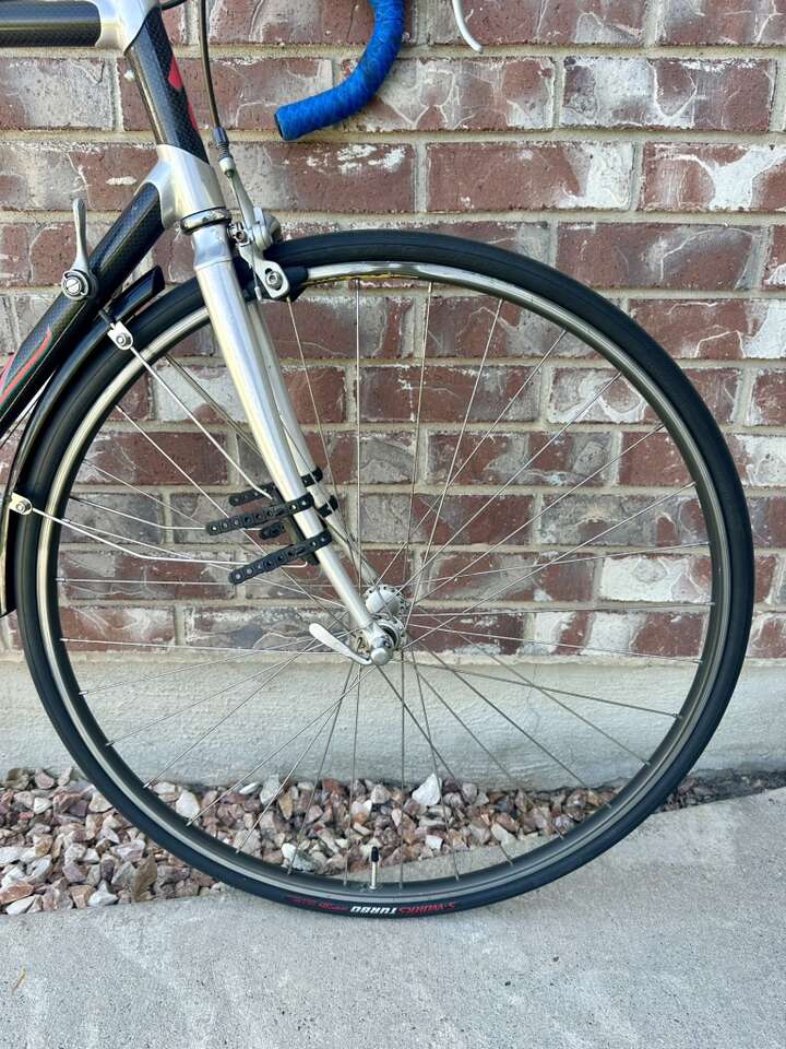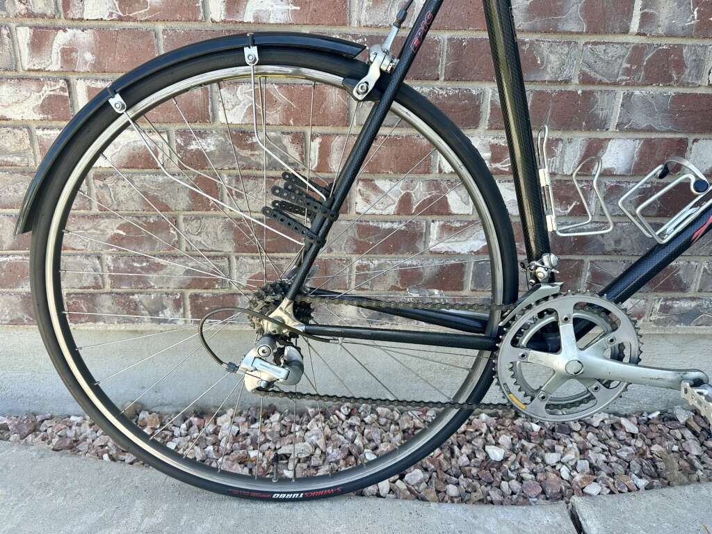 -Carbon/Aluminum frame -Shimano 105 group set(shifting and braking) -Brand new 700x26c Specialized S-Works Turbo Gripton tires. -Brand new chain -Planet Bike fenders -2 bottle cages