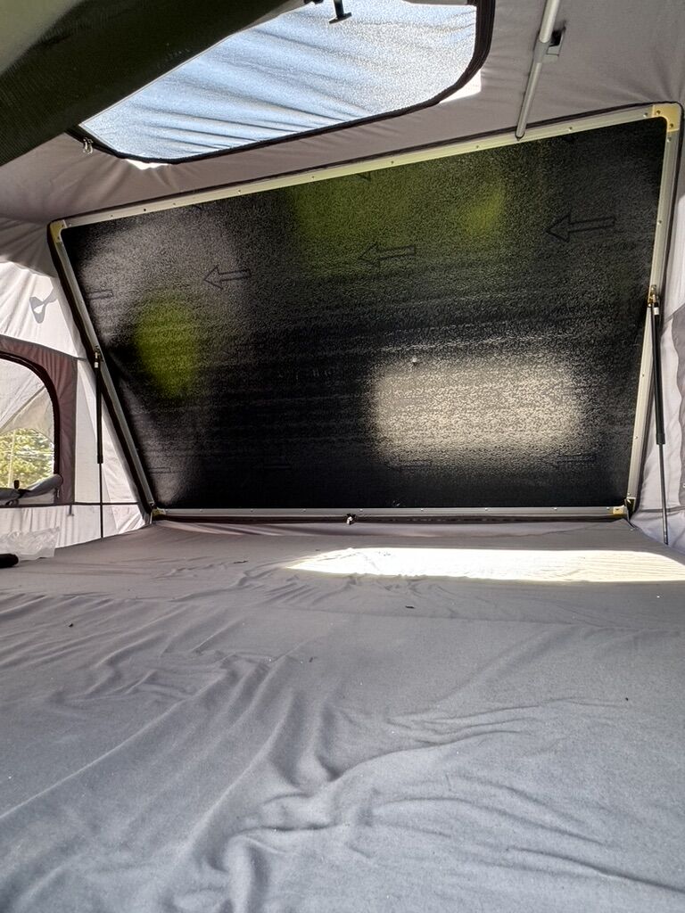 This is a three-way folding tent. The cover unzips all four sides and the top part of the cover stays on the tent as it’s open. So you do not have to remove the cover at all like most soft-shell style tents.