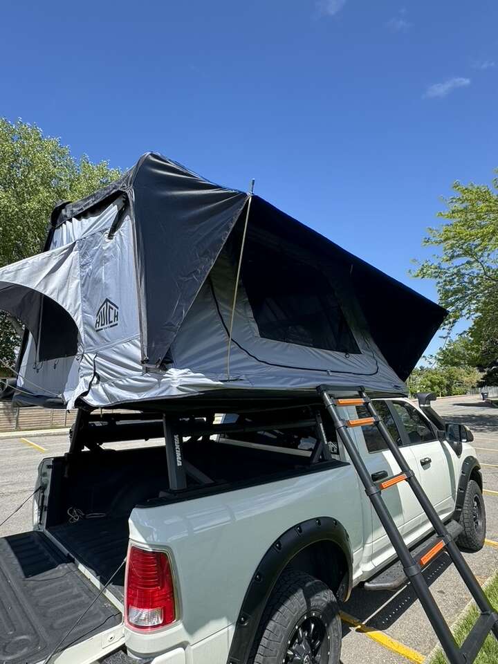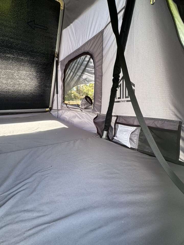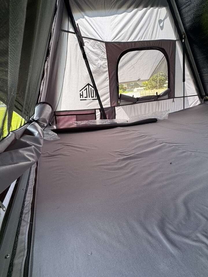 This new soft shell open to the side and can sleep 4-5 people depending on the size.