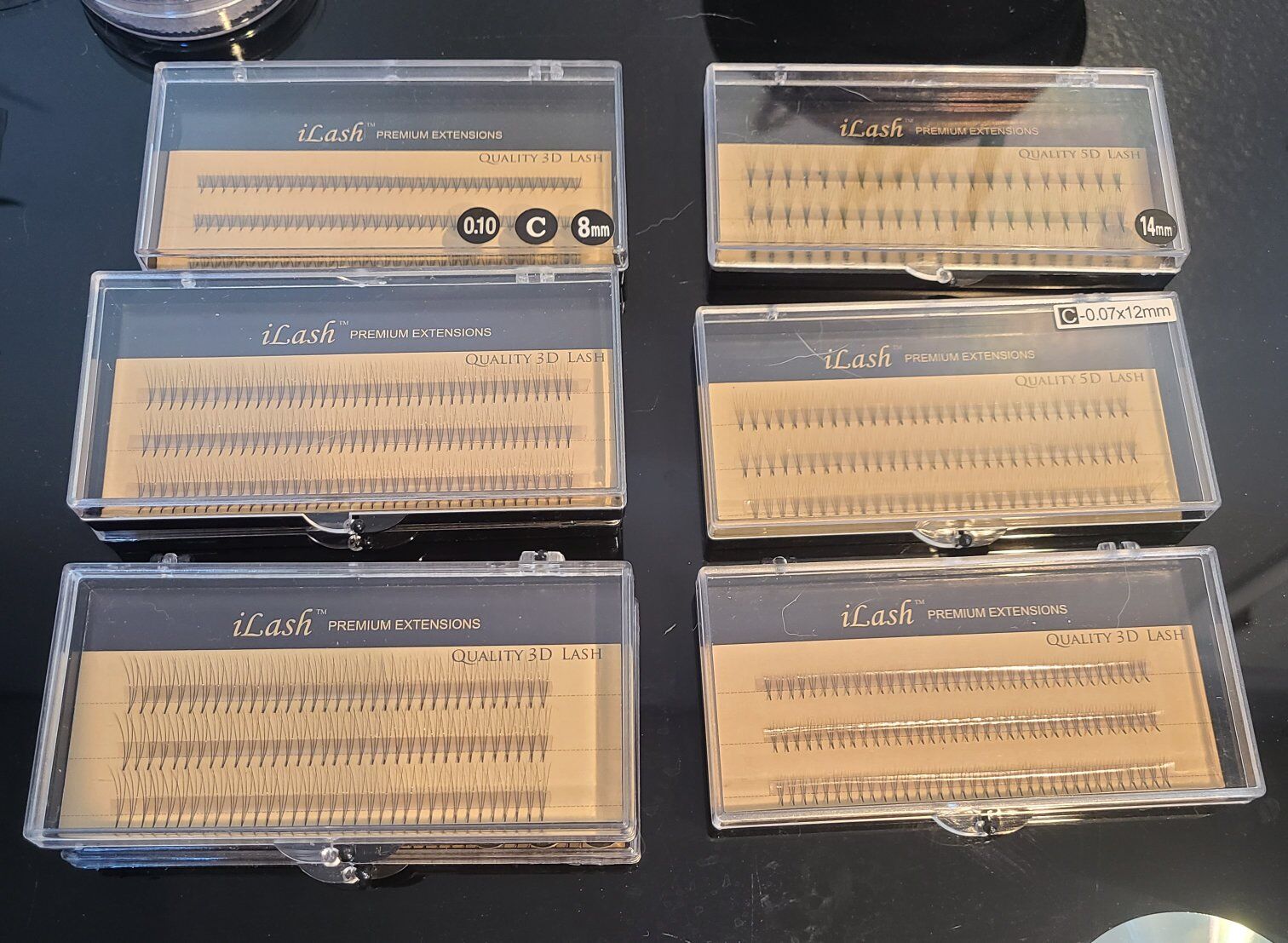iLash Eclipse C curl .15 16mm, 3D Fans C curl .10 8 mm, 3D Fans C curl .10 12 mm, 2 cases 3D Fans C curl .10 14 mm, 2 cases 3D Fans C curl .10 8 mm, 3D Fans D curl .10 8 mm, 5D Fans C curl .07 12 mm, 5D Fans C curl .10 14mm,