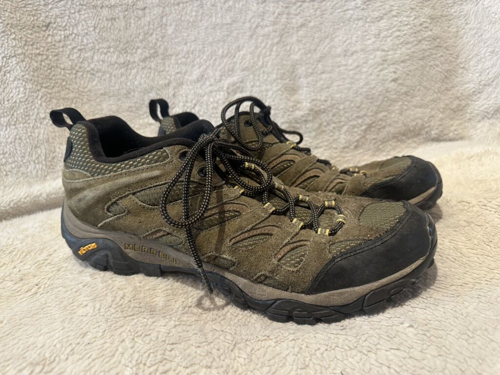 Merrell men’s size 13 olive green with beige trim, leather and mesh hiking shoes. These are in good condition, see photos for details. I take cash or Venmo, but cash is preferred. Text is best. 801-201-4446. Check out my other ads for additional sizes and styles.