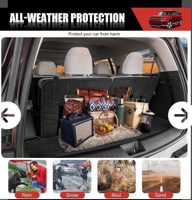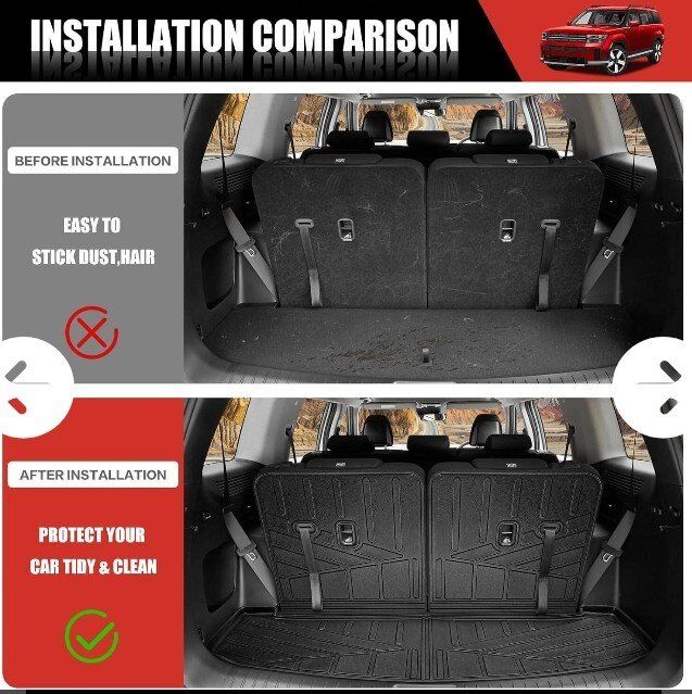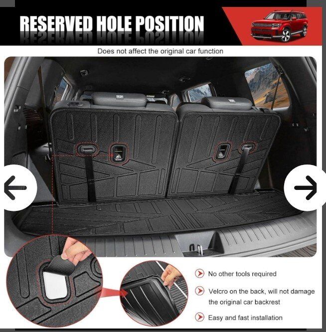 VenmoFor 2024 Hyundai Santa Fe: Utility trunk mat designed for 2024 Hyundai Santa Fe 3rd row. Please check the model of your car carefully before purchasing. Upgraded TPE material: Our cargo mat for Hyundai Santa Fe is made of TPE material. Unique anti-skid textured mat, soft, odorless, heat and cold resistant. It can take care of the health of your baby and family. All-weather protection & anti-scratch: To provide complete protection for your vehicle's interior from dust, dirt, salt, rain, snow, and to keep your vehicle's floors clean and pristine for all seasons.