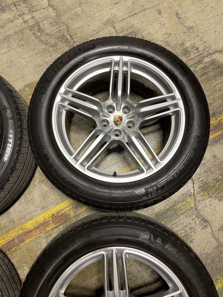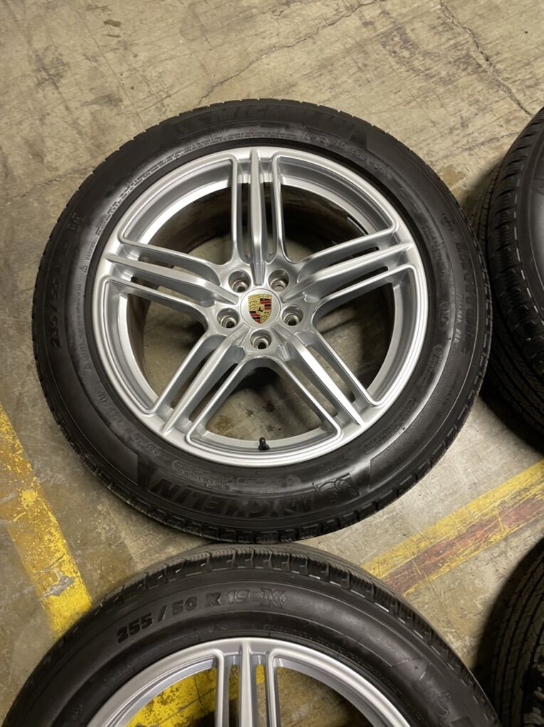 OEM 19” Porsche wheels and tires, fit Macan. Matching Michelin Latitude tour HP tires with 9/32, just balanced staggered.
