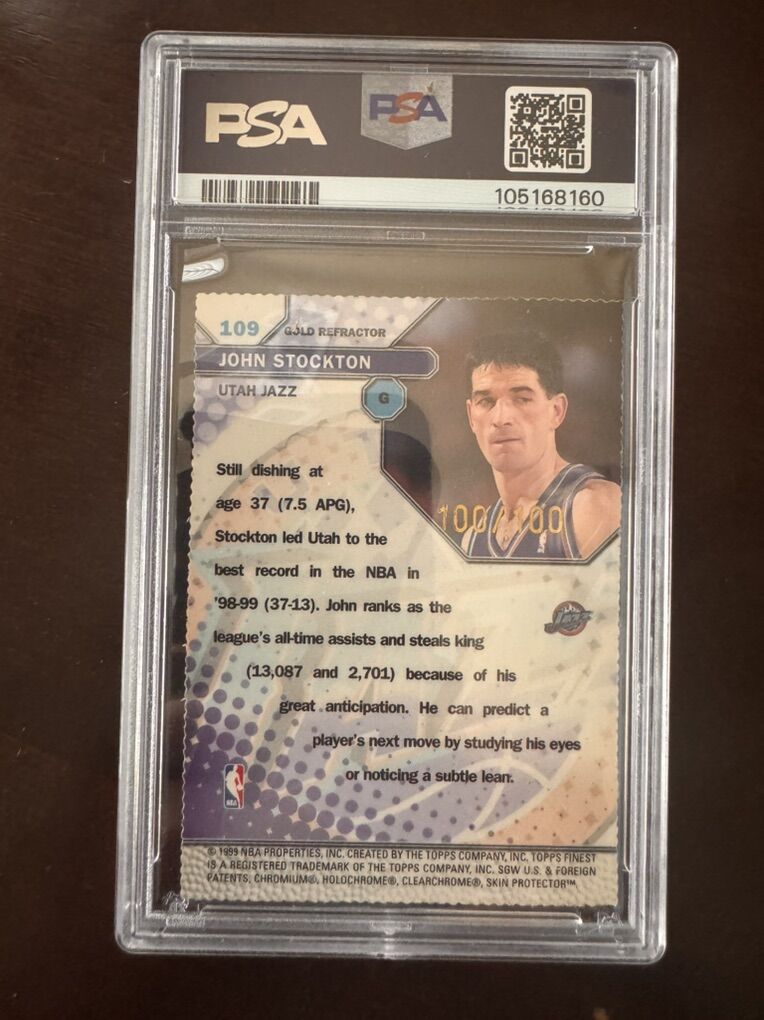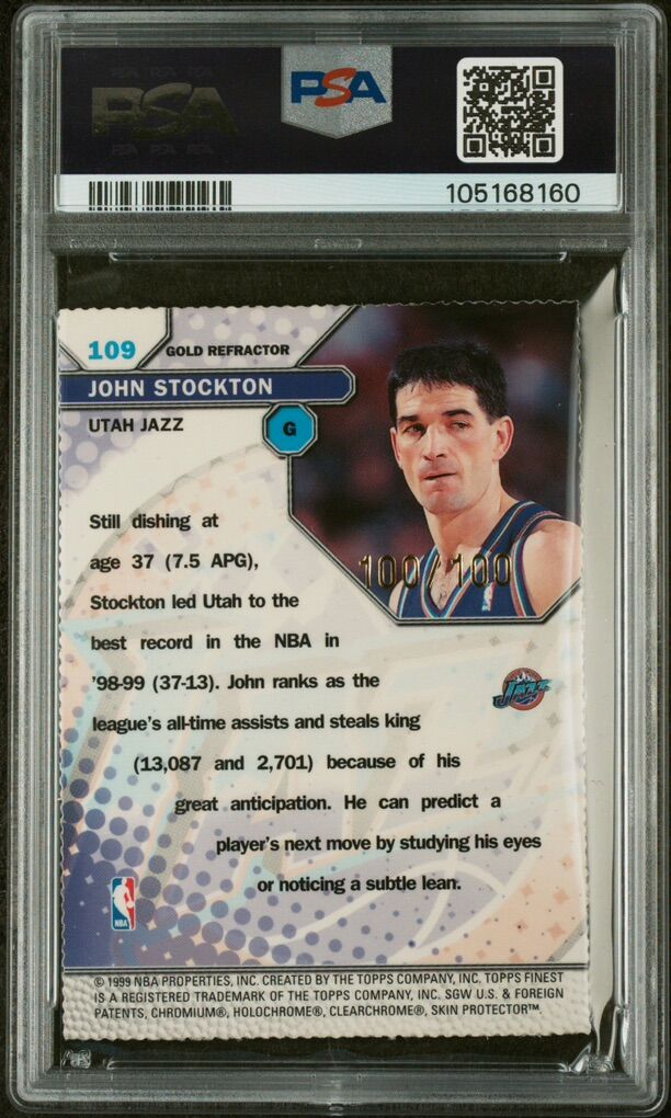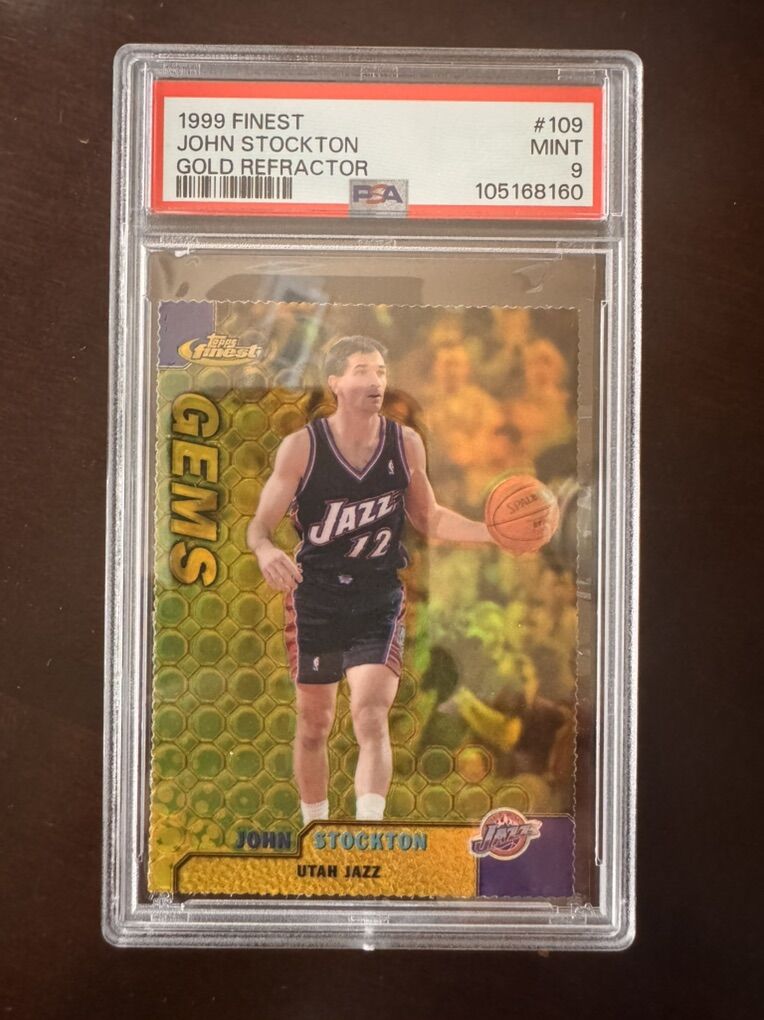 1999 Topps Finest John Stockton Gold Refractor /100 #109 PSA 9 Utah Jazz