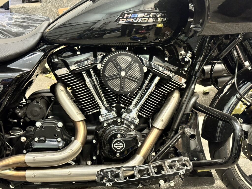 The Hofmann Designs 2023.5-2024 Touring Air Cleaner Kit is expertly crafted for optimal performance on the '23.5 121 VVT, '24 117 & '24 121 engines. Made with precision from 6061 billet aluminum, this kit boasts a 100% bolt-on design and includes all necessary hardware, fittings, and gaskets. It also features an advanced K&N hi flow air filter, available in your choice of Black or Machine Finish face plate with carbon fiber insert. Its slim and compact design houses a full-size K&N filter, while the new fuel tank and cam cover extend outward, allowing for a more tucked-in leg position compared to the factory air box. Hofmann Designs 2023.5-2024 CVO Air Cleaner Kit Designed exclusively for the '23.5 121 VVT, '24 117 & '24 121 engines. Manufactured in-house from 6061 billet aluminum 100% bolt on design Includes all necessary hardware, fittings, and gaskets. Includes K&N hi flow air filter. Your choice of Standard 5 Spoke or Directional 5 Spoke. Slim and compact design while still utilizing full size K&N filter. New fuel tank and new cam cover stick out further than entire air cleaner kit. This design allows you to keep your leg tucked in substantially more than the factory air box.
