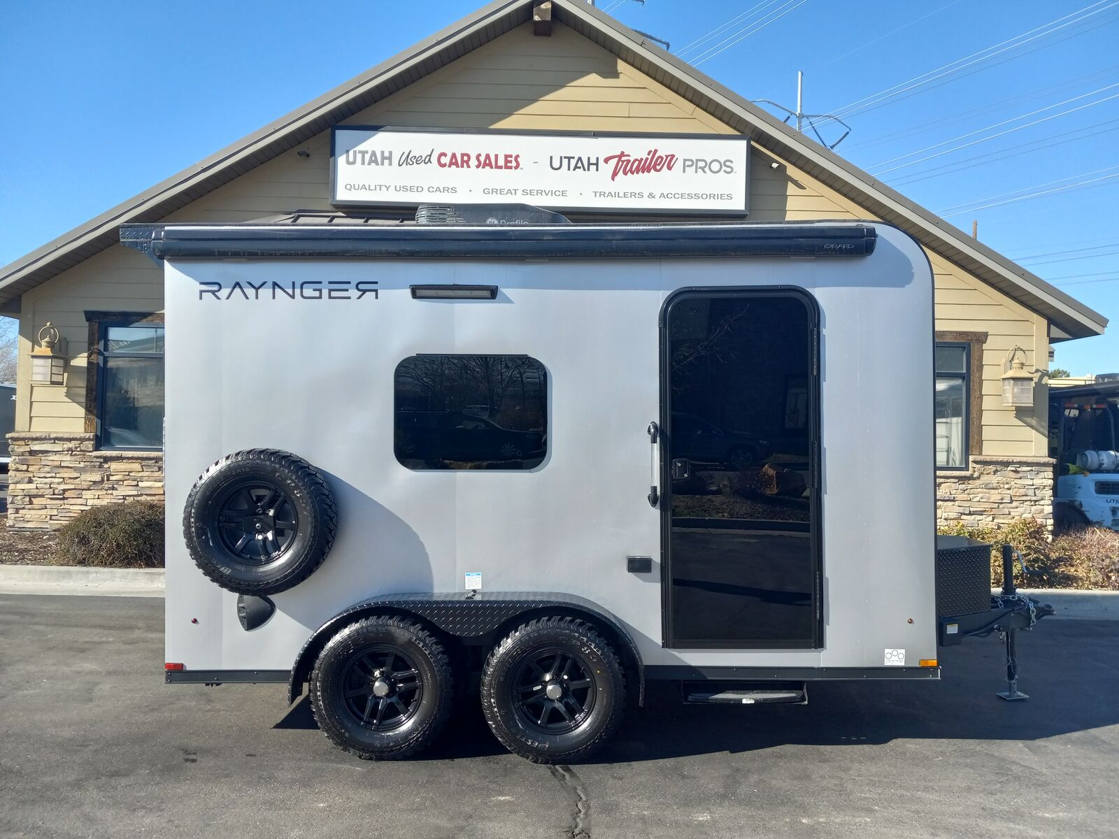LIMITED TIME $207 A MONTH WITH ZERO DOWN WITH OUR SPECIAL LOCAL CREDIT UNION PARTNER!!! NO PRE-PAYMENT PENALTIES!!! NEW MODEL!!! RAYNGER PREMIUM OFF ROAD TOY HAULER CAMPER!!! 19 INCH GROUND CLEARANCE!!! OFF ROAD TIRES!!! FULLY INSULATED!!! HEATING AND A/C!!! WET SOUND STEREO!!! FOLD OUT/POP OUT TENT WITH MATTRESS!!! Aluminum Ventilated Locking Generator Box!!! 11.1 Foot Long Garage Space!!! And Much MUCH MORE!!! Check out our Specs!!! Also available in 18 foot models. 18 Foot Models can have 3 Fold Out Beds/Pop Out Tents. 16 Foot and 18 Foot Models will fit ANY stock 4 Seater Side by Side • 6” I Beam Frame• Flat Top Design• Flat Front Design• Wall Posts 16” on Center• Cross Members 16” on Center• Roof Bows 16” on Center• Rust Inhibiting Z-Tech Protection on Chassis• Ameraguard on Tongue• Ameraguard on Rear Bumper• Ameraguard Around All Door Openings and Stepwell• Ameraguard Around Edges of Ramp Door• 3500 LB Spring Axles• 2-5/16” Coupler• One-Piece Aluminum Roof• ST235/75R15 Aluminum Wheels with Chrome Center Caps• 2000# Ramp Door with Eberhard Latch• 30” Tempered Glass RV Door with Screen Door• .030 Exterior Metal with Screwless Sides• 24” Black Stoneguard• 3” Black Bottom Trim• Sand Pad• Black Door Hold• 2.7mm Charcoal Textured Vinyl Ceiling • 9mm Charcoal Textured Vinyl Walls• 3/4” Engineered Wood Floor with Rubber Coin Overlay• (6) 1200 LB Floor D rings Installed with Backer Plates• LED Clearance Lights and Tail Lights• LED Back-up Lights• No Show Wheel Box• Spoiler with Toggle Switch• RV Step• 7’ Interior• (2) 17” Chrome Base Lights with Switch• (1) Black 17” Spot Light with Switch• (1) 30 Amp Panel with Marine Plug• A/C Unit with Heat Strip• (3) Interior Recepts• (1) Exterior Recept• 12V Battery and Charge Line• Prep for Backup Camera• Wet Sounds System• (3) Blue Interior Cabinet Lights• (1) 6’ Section of Flex Lights• Black ATP Rear Header and Hoop• Black ATP Fenders• Insulated Walls & Ceiling• Base Cabinets• Overhead Cabinets with Netting Over Compartments• Pop Out Tent• Black ATP Storage/Generator Box Mounted On Tongue.