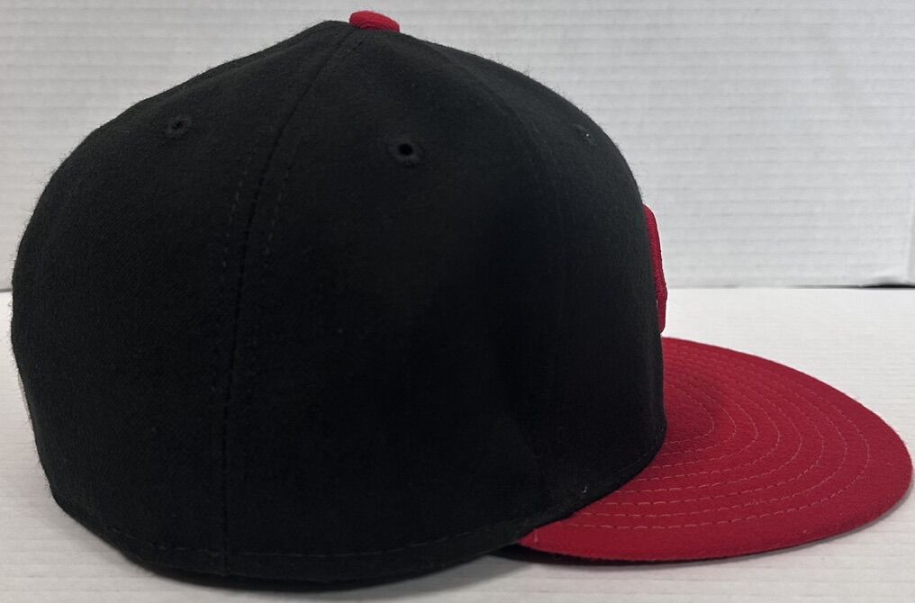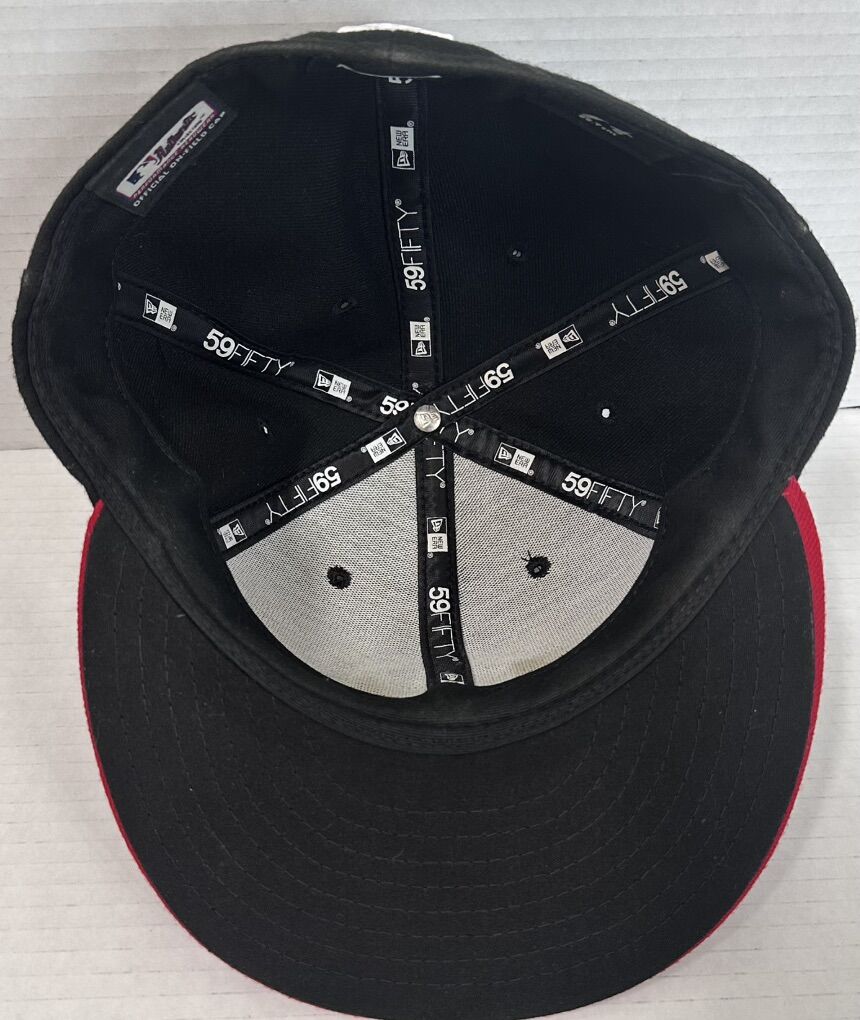 The Cincinnati Reds MLB New Era Fitted Hat in size 7 3/8 is an officially licensed baseball cap featuring the iconic team colors of black and red. Made by the trusted brand New Era, this hat is a perfect accessory for any MLB fan looking to show their support for the Cincinnati Reds during the regular season.