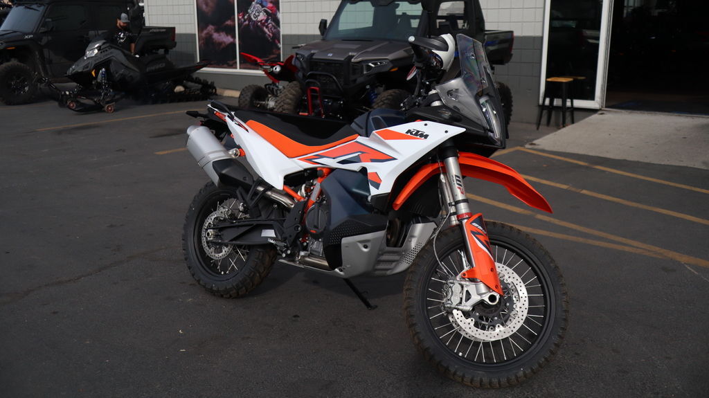 2024 KTM 890 Adventure R Rally Limited to only 700 worldwide, the all-Austrian-made 2024 KTM 890 ADVENTURE R RALLY rips into the mid-weight adventure landscape with all the rigor of a READY TO RACE Dakar machine. Thanks to race-spec WP XPLOR PRO Suspension, heavy-duty rims and a lightweight Akrapovic slip-on fitted as standard, the destination comes second. With its unmatched ability to dispatch everything from gravel switchbacks to single tracks, the KTM 890 ADVENTURE R RALLY sets the new standard when it comes to serious offroad travel capabilities. Features may include: IN THE ROUGH DAKAR-BRED WP PRO COMPONENTS There's no humble way to say this – the 2024 KTM 890 ADVENTURE R RALLY is fitted with the most performant and exclusive offroad suspension available on the market. Developed in conjunction with input from the WP Factory Racing department, both ends feature proven, high-end race technology along with a massive 270 mm of travel. ON TARMAC KEEEPING YOU MOVING Rider aids No, the KTM 890 ADVENTURE R RALLY hasn't gone soft. On the contrary, KTM rider aids are developed to enhance the overall rider experience by providing more control in different riding scenarios. More so, ABS, MTC, and RIDE MODES allow you to get the most out of your machine when barreling down the asphalt on your way to the rough stuff. BEHIND THE BARS RALLY INSPIRED Bodywork Inspired by the Dakar-winning KTM 450 RALLY, a completely reworked and striking front end gives the KTM 890 ADVENTURE R RALLY true READY TO RACE looks. In addition, the structure below the fairing makes use of 2 forged aluminum brackets that provide maximum stiffness to the front mask, windshield, and instrument tower. This, along with using in-mold graphics for durability and a high front fender to keep the front wheel rotating freely in heavy dirt, and a selection of specific KTM POWERPARTS for enhanced protection, makes the KTM 890 ADVENTURE R RALLY ready for any adventure. ON THE CHARGE ENGINEERED TO RIDE Frame The overall geometry of the KTM 890 ADVENTURE R RALLY was developed for light handling, and comfort on long distance exploration missions - with unchallenged offroad capability. Strength was a big consideration in the design, so a tubular Chromoly steel frame is used with the engine acting as a stressed member to reduce weight and overall size. All design and engineering innovations are focused on being compact and light.