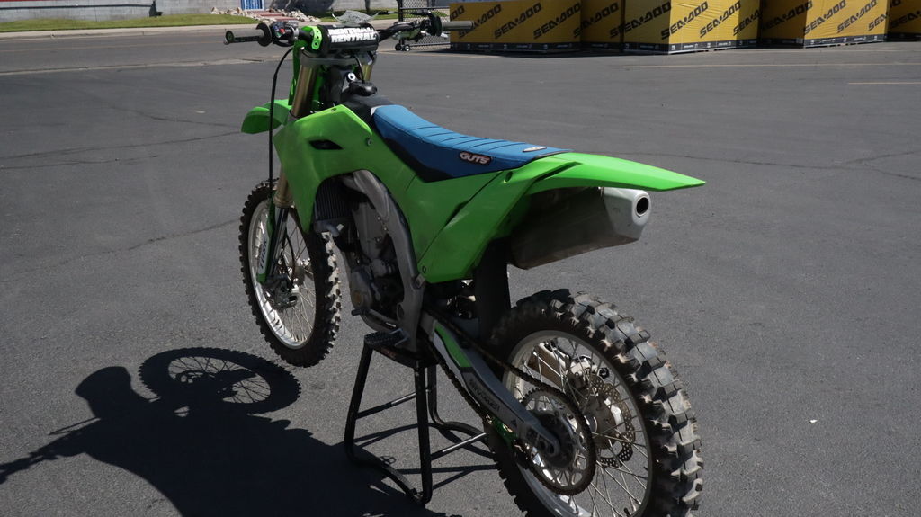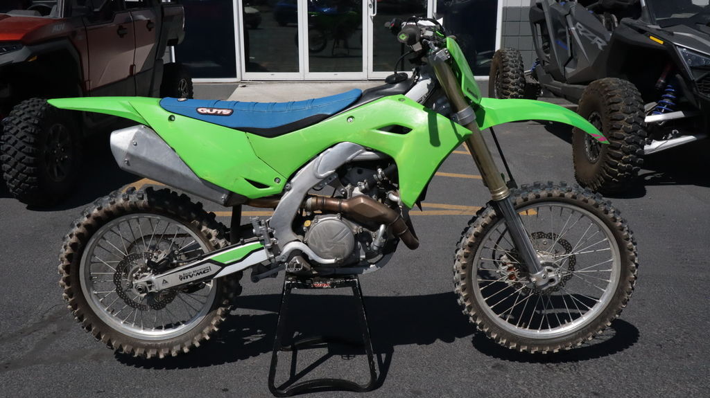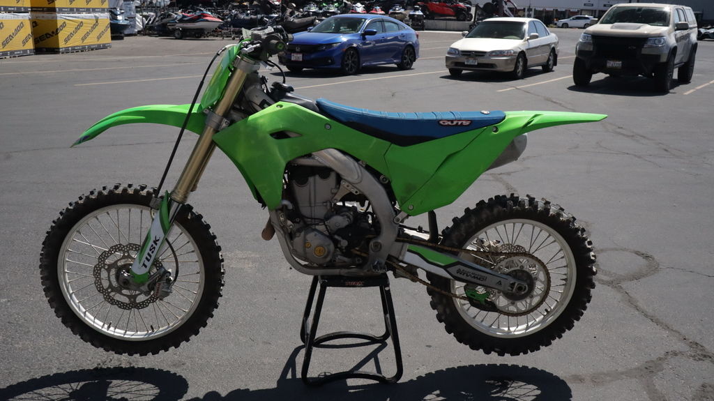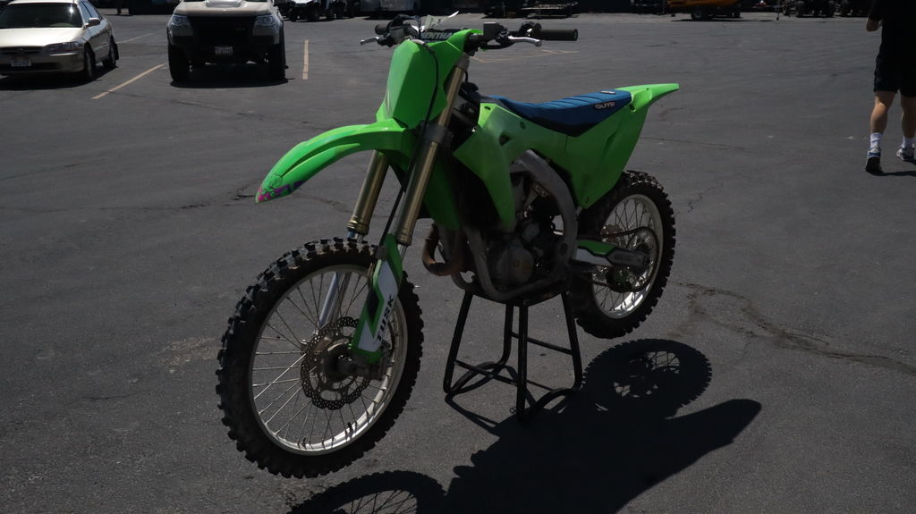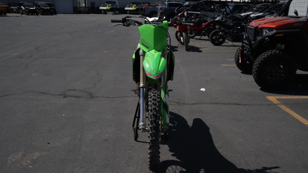 2024 Kawasaki KX™450 The KX™ legacy represents a long line of champions. The drive to produce more has not slowed down. Our all-new flagship race machine, the KX™450 motorcycle, offers next-level engineering and power to dominate the track. Over the decades, we've learned what it takes to win and stay on top. The KX450 embodies this legacy to the fullest. Features may include: POWER & PERFORMANCE BUILT TO WIN The updated KX™450 engine delivers broad, useable torque and strong, responsive power across the rev range. From the starting gate to the finish line, this race-ready machine is built to stay ahead of the pack. RACE-READY SUSPENSION LEAVE THEM IN THE DUST Take the lead with proven race-winning performance. The highly adjustable suspension package delivers smooth action, firm damping, and contributes to optimal traction. ADVANCED TECHNOLOGY RIDE WITH CONFIDENCE With traction adjustability and power mode control at your fingertips, the KX™450 motorcycle offers superior features designed to inspire confidence. What's more, this race-ready machine is backed by decades of championship-proven experience. CHASSIS & ERGONOMICS MADE TO SHAVE LAP TIMES Experience the race-winning advantage of a strong and lightweight chassis, agile handling, and exclusive ERGO-FIT® technology. ADDITIONAL NEW lightweight aluminum perimeter frame for improved handling NEW muffler position for improved mass centralization NEW ODI lock-on grips NEW quick-release side cover offers tool-less air filter access NEW radiator shrouds shape for improved riding position NEW rear fender Coned Disc-Spring Hydraulic Clutch