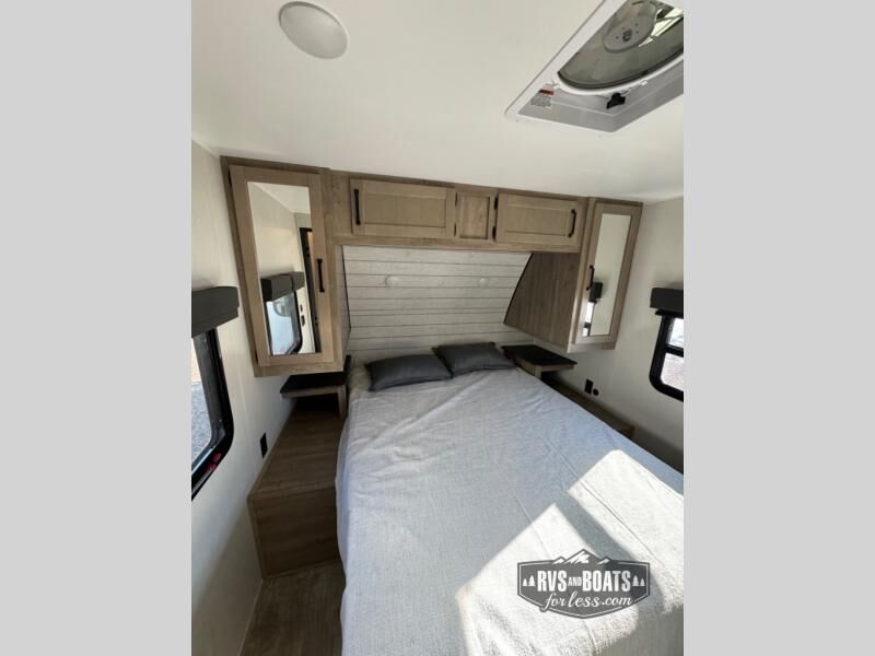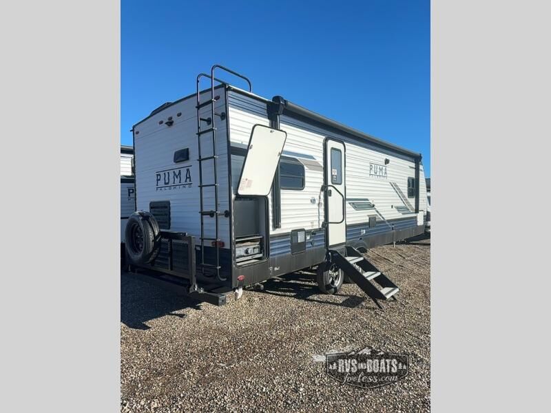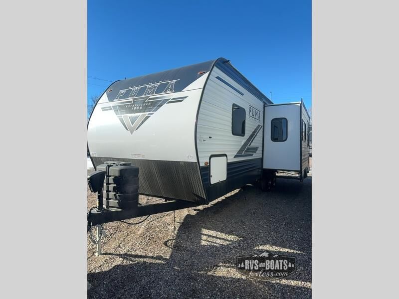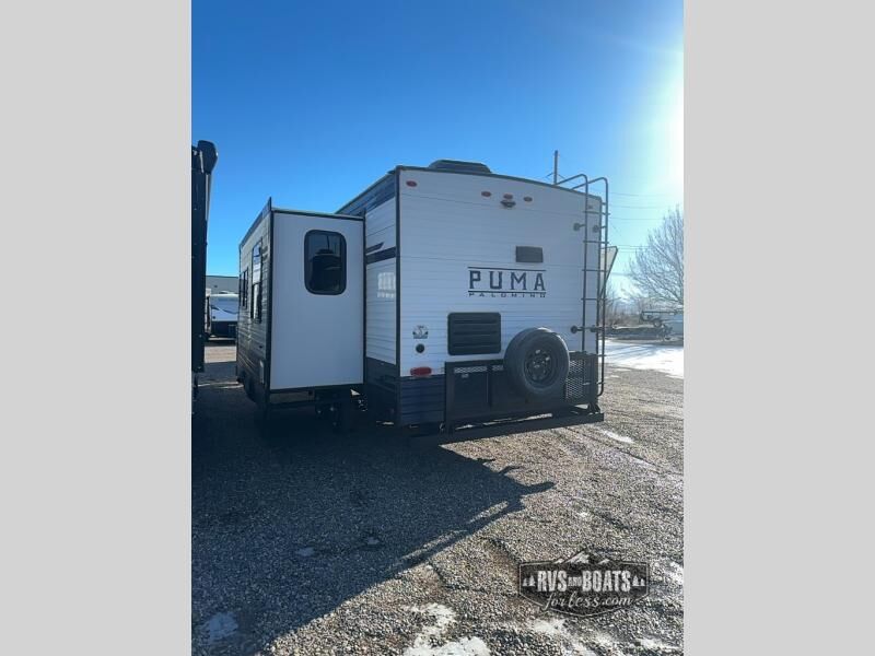 If you're looking for family-fun adventure then you need one of these Palomino Puma fifth wheels or travel trailers! They are built rugged, easy to tow, and jam packed with features. The Darco wrapped underbelly will protect your units vitals through every season and the AlphaPly roofing membrane covers it. They also have super lube axles and a powder coated frame. Their luxurious interiors feature a spice rack and built-in knife rack in the kitchen, USB charging ports to keep your electronics at 100%, and high density foam mattresses for a good night's rest. The required Advantage package comes with night roller shades for privacy at night, two outside speakers to crank up the tunes while you play cornhole, and an outside shower to keep the dirt outside where it belongs, plus so much more!
