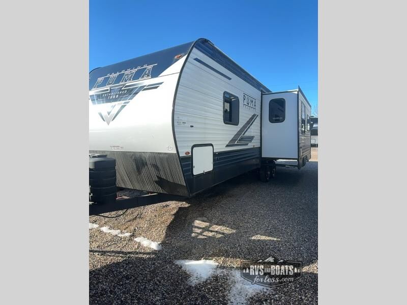 If you're looking for family-fun adventure then you need one of these Palomino Puma fifth wheels or travel trailers! They are built rugged, easy to tow, and jam packed with features. The Darco wrapped underbelly will protect your units vitals through every season and the AlphaPly roofing membrane covers it. They also have super lube axles and a powder coated frame. Their luxurious interiors feature a spice rack and built-in knife rack in the kitchen, USB charging ports to keep your electronics at 100%, and high density foam mattresses for a good night's rest. The required Advantage package comes with night roller shades for privacy at night, two outside speakers to crank up the tunes while you play cornhole, and an outside shower to keep the dirt outside where it belongs, plus so much more!