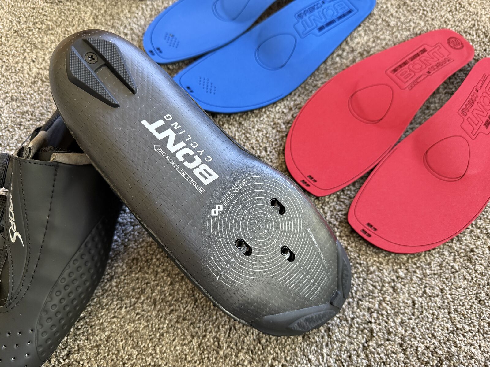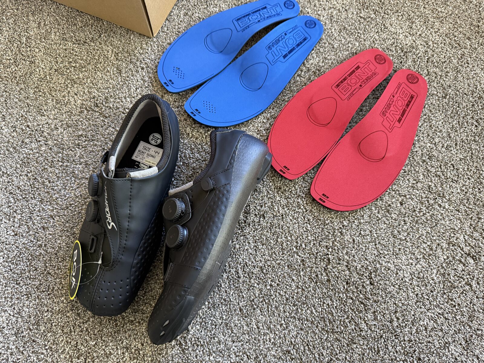 For Sale – Never worn Bont Vaypor S Double Wide Fit 44/9.5 with medium and high arch Innersoles. They don’t quite fit me, but they’re semi-custom and I can’t send them back. Paid $800 for all. See https://shop.bontcycling.com/collections/road/products/vaypor-s-black for more information.