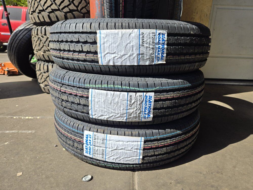 BRAND NEW SET OF NATIONAL ROADMAX ST ST205/75R15 6ply tires Free mount, balance, and brand new valve stems. $400 plus tax Also check out our GOOGLE reviews to assure you’re in good hands, just search (Oliver Tires) Hablamos español. We also offer lots of other sizes new and used. Call or text for availability Espańol; 8016885139 Office: 8016620227 Or come visit us at 3010 west 500 south Salt Lake City Utah.