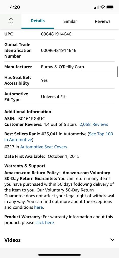 Bought these brand new to put on my older RV captain chairs, but decided to buy new captain chairs. They are still in the box. Paid $100.00 each, asking $35.00 each.