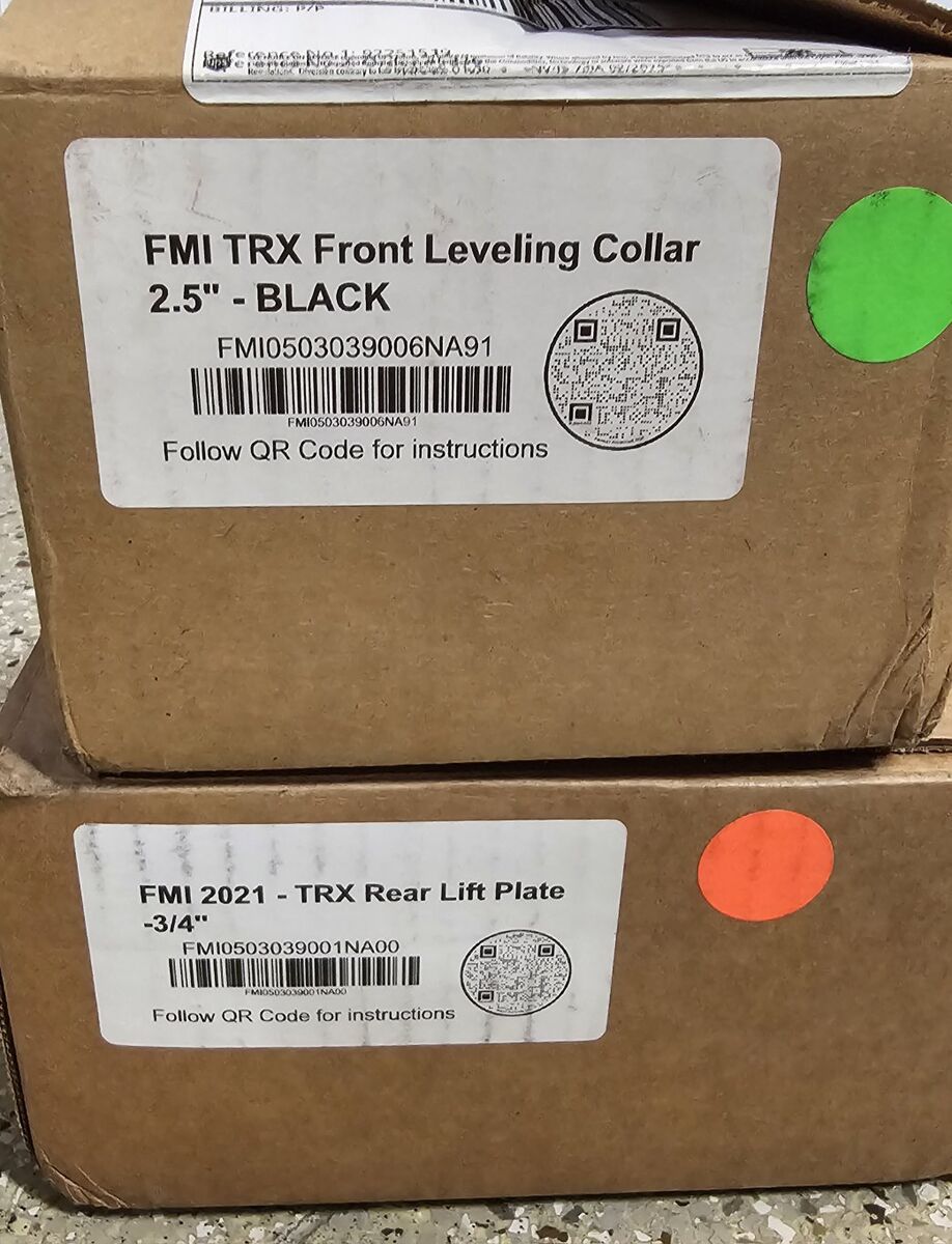I have a brand new 2.5" front leveling kit collar and the 3/4" rear spring spacers for the Ram TRX or the new Ram RHO.