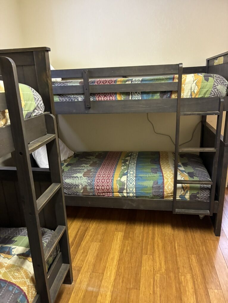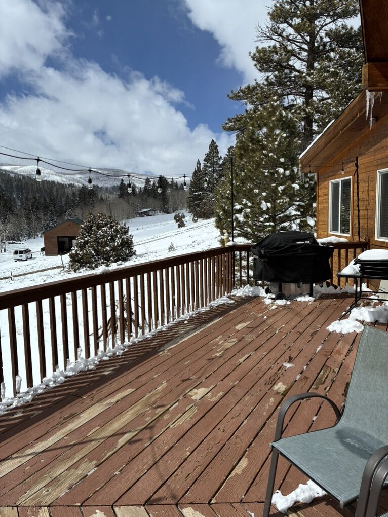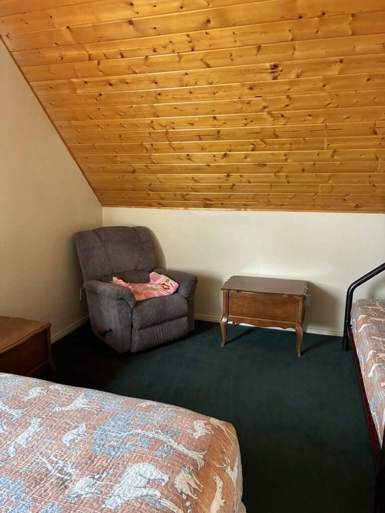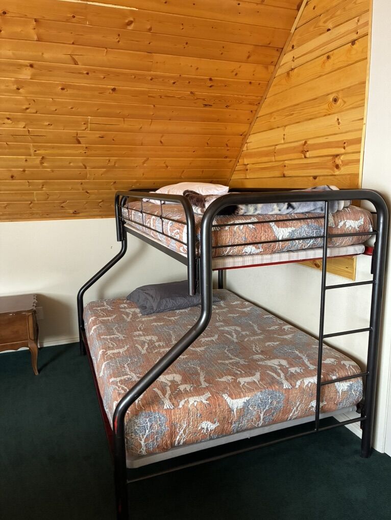 Cabin sleeps 15 in beds. A crib and Pack n Play are there also. Plenty of room for playing games and socializing. 5 bedrooms, 2 bathrooms, laundry, WiFi, Roku TV, loft, children’s play area with toys, BBQ, kitchen is fully equipped, coffee maker, large table with a leaf underneath that can be added. Extra fridge is in the basement. Ice maker in upstairs refrigerator.