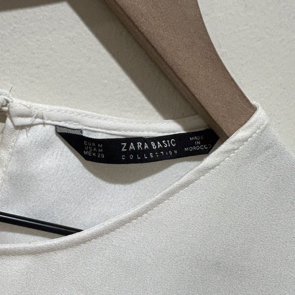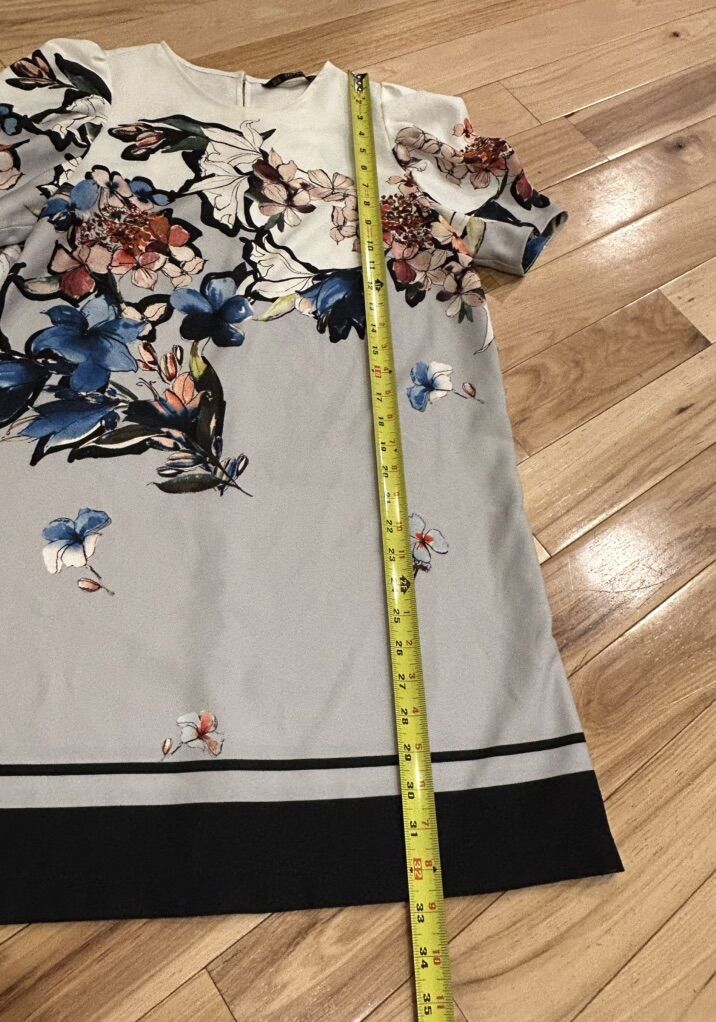 Zara Basic Short Sleeved Floral White and Gray Shift Dress - Women’s Size Medium - pullover style with single back button closure - pre-owned, great condition (only real sign of use is the inner tag has been removed).