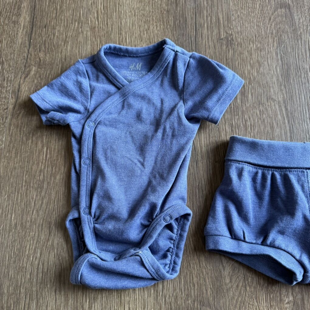 H&M Dusty Blue Baby Jersey Shorts Set Newborn