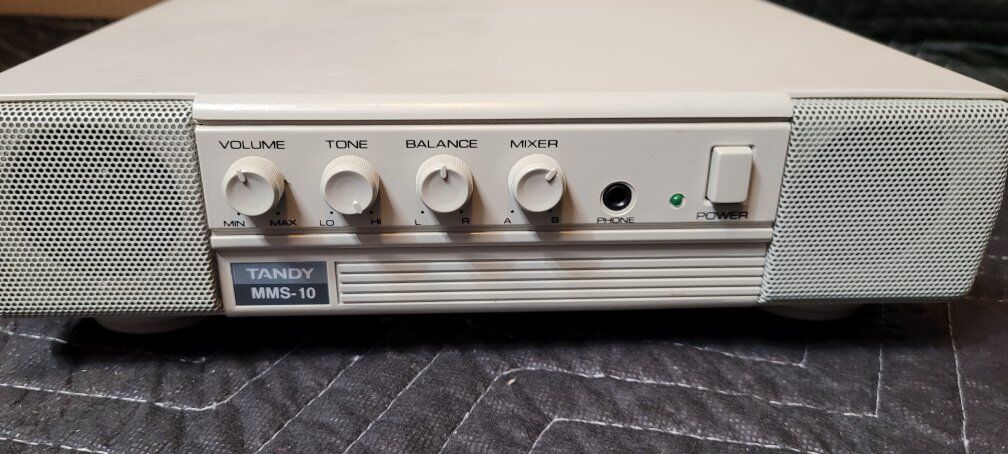 A classic here. For those who remember the classic Tandy computer setups.. Here is the tandy mms-10 Internal speakers and speaker outputs for a wide range of sound options. Dual inputs and you can mix/combine the sound of both. A true classic and great collector item. Asking 20