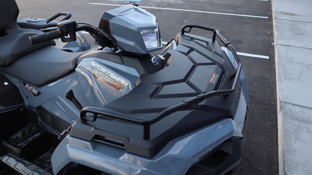 With 11 gallons of combined storage, 270 lbs of rack capacity, front rack extender, A-arm guards, and a 1.25" hitch receiver—this ATV is ready for anything.
