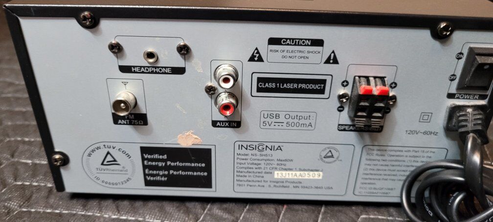 Insignia receiver. NS - SH513 Bt capable Great compact receiver that's very capable. Works perfectly. No remote... Asking 20