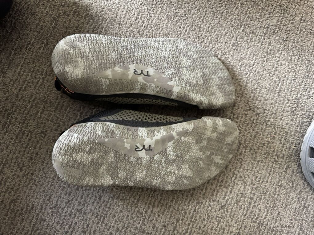 These are a barefoot shoe with zero drop (no heel lift). These are great training shoes or just to wear around! They feel like they suction onto your feet and mold around them for a custom fit. I really like them, but I have too many shoes and don’t reach for these as often as I should. I’ve only worn them 5 times.