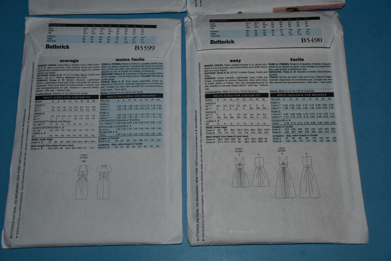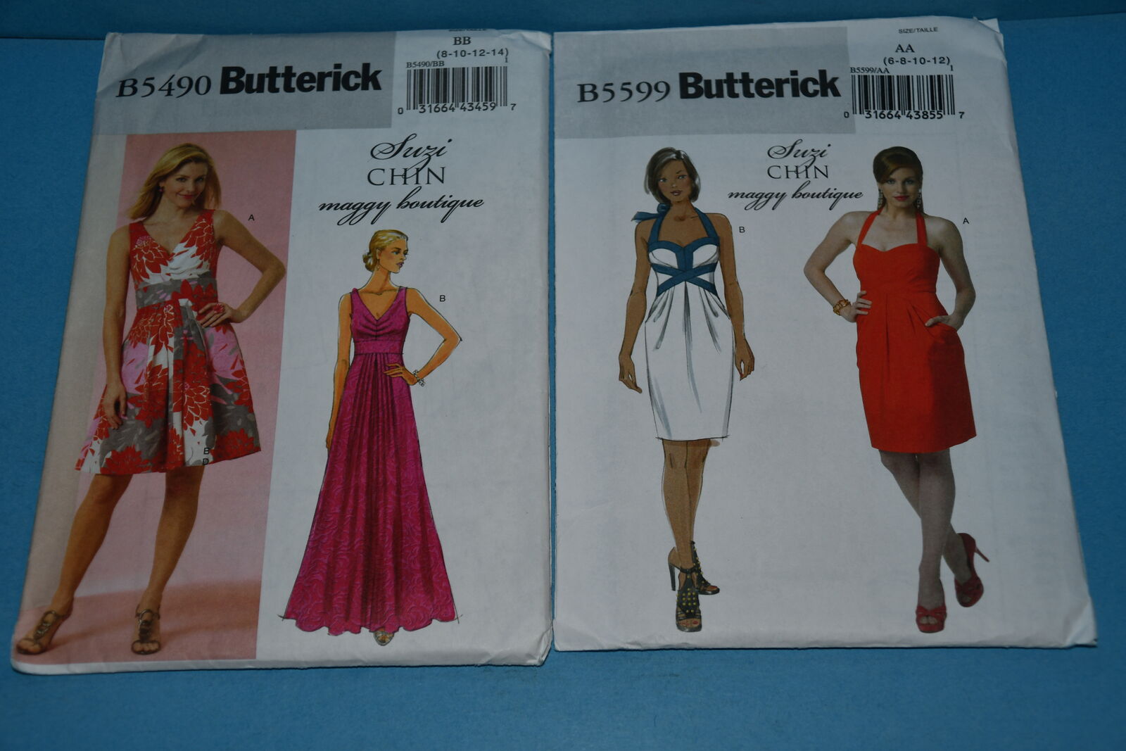 This Set of 4 BUTTERICK "SUZI CHIN" SUMMER DRESS PATTERNS are UNCUT & FACTORY FOLDED. The sizes are from 6 -14. Our home is smoke free. Questions??? Please ask. We are located in Plain City. Cash only please.