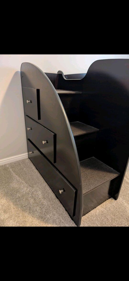 VenmoThis bed is perfect for younger kids. It has drawers along the side where there are steps up to the twin size mattress. Our son has outgrown it and it's still in great shape. Feel free to ask any questions, text is preferred. thanks!