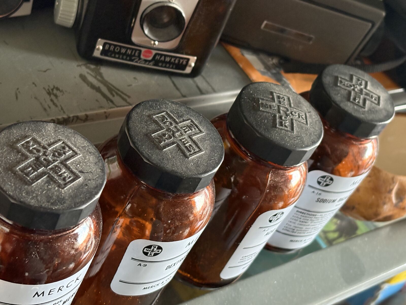 VenmoMerck Vintage Rx Pharmaceuticals Brown Glass Medicine Bottles Antique apothecary $12 per bottle Great decoration pieces