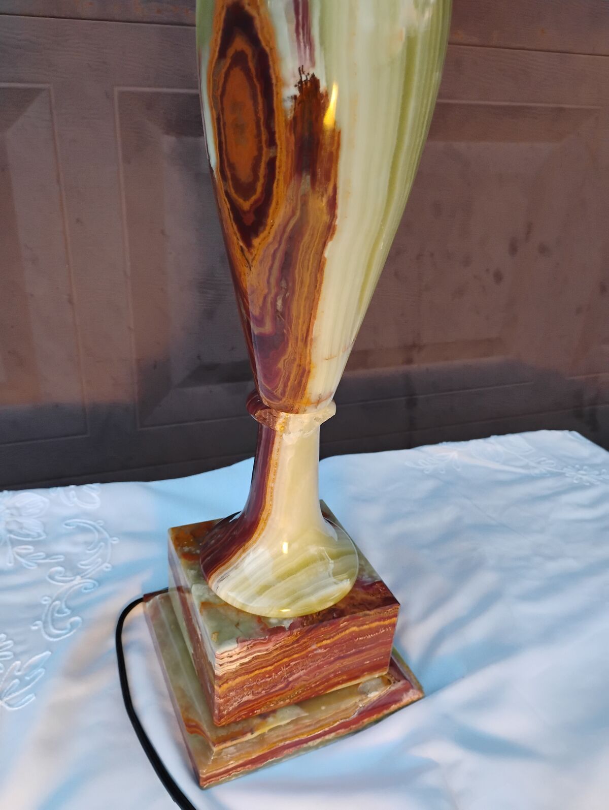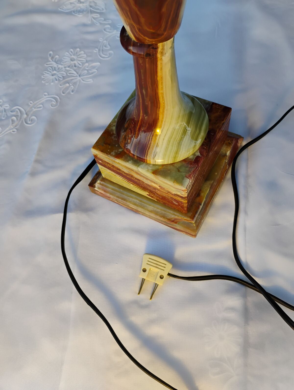 VenmoBeautiful vintage table lamp. Has a piece missing towards the bottom, see pics. Otherwise great condition. I haven't been able to find the exact one online but similar ones show Italian 1950s. The wiring is about that time. Nevertheless very nice lamp different shades available.