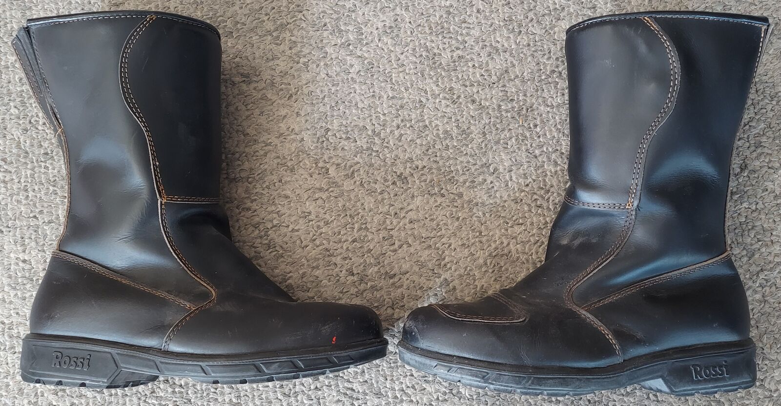 VenmoRossi Leather Motorcycle Boots, Men size 10, brown, zip closure, reinforced shift zone, worn/broken-in but good condition.