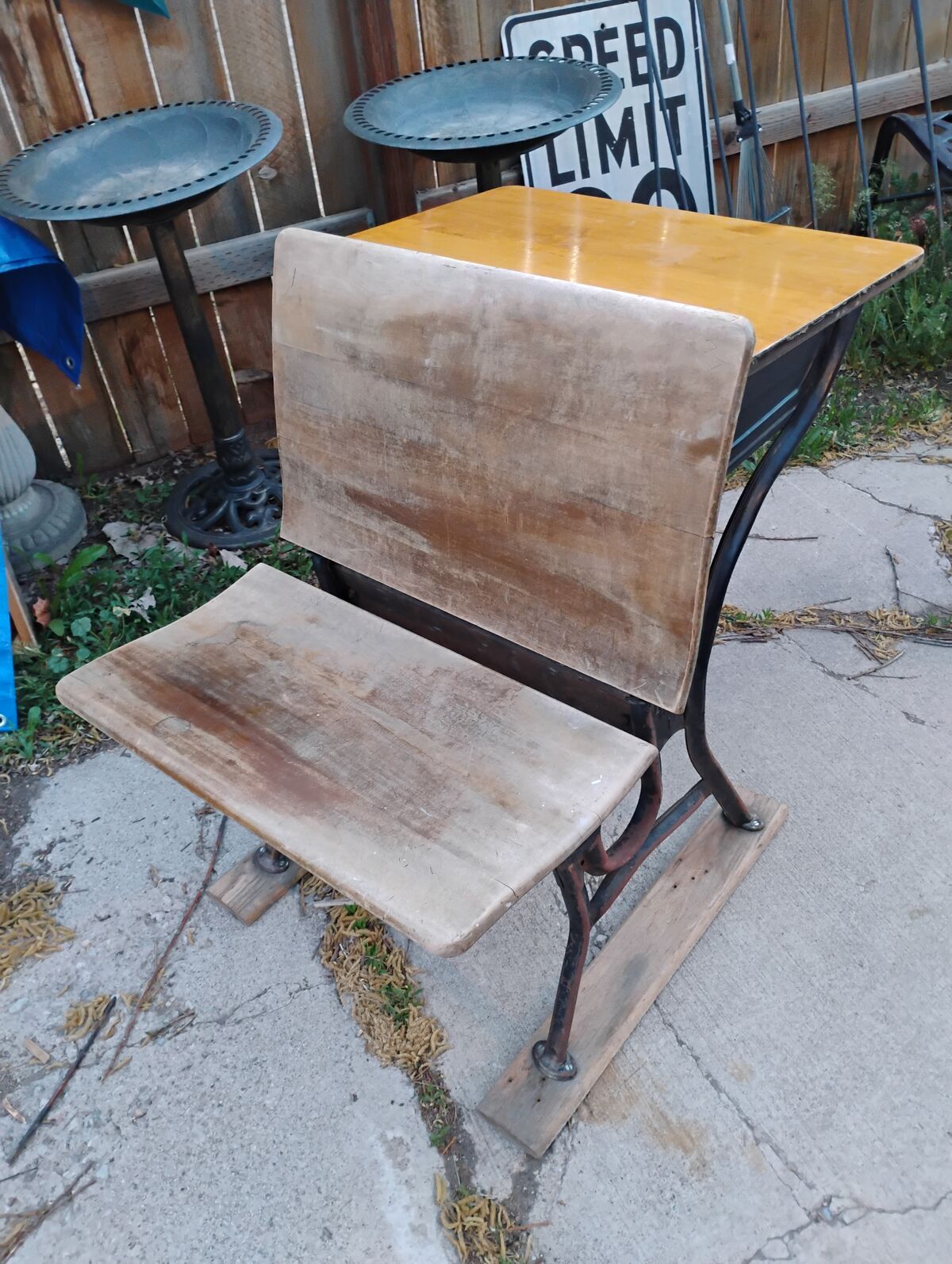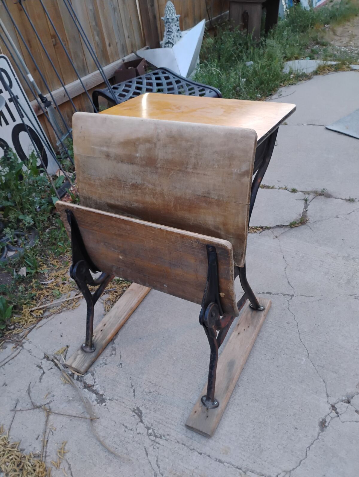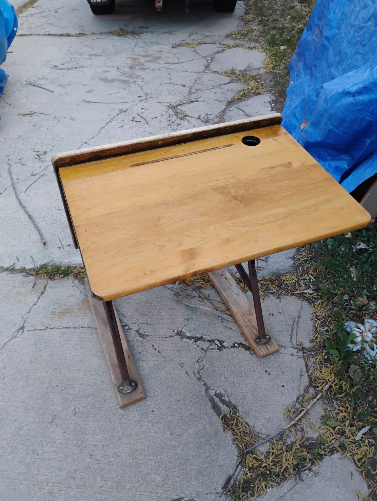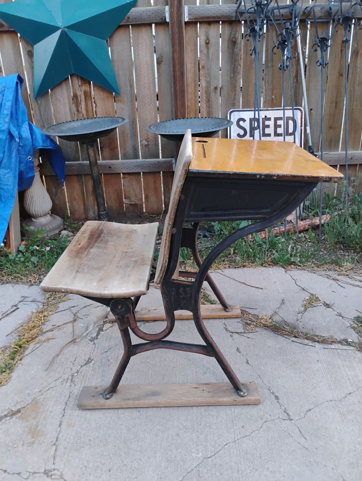 VenmoIron base with skids attached for easy display and moving. Good condition with book storage. And ink well hole. Full size.