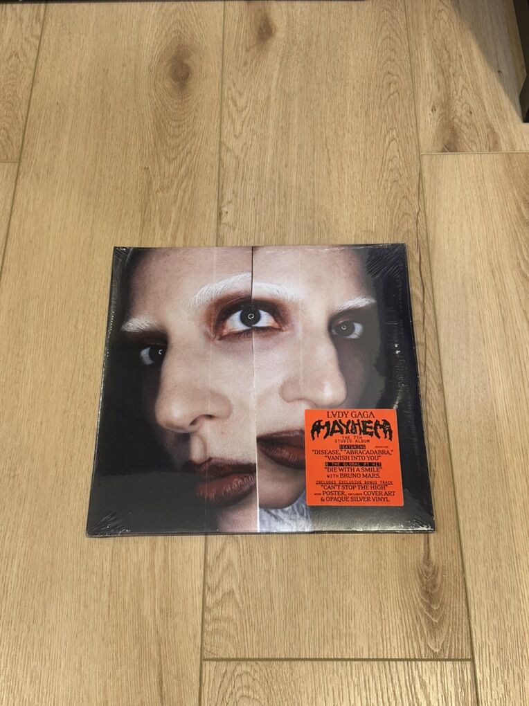 14-time Grammy winner, Academy Award winner, & 2-time Golden Globe winner Lady Gaga returns with MAYHEM. Pressed on opaque silver vinyl with exclusive cover, poster and bonus track “Can’t Stop The High.” Also includes previously released singles “Abracadabra” Die With A Smile and Disease.